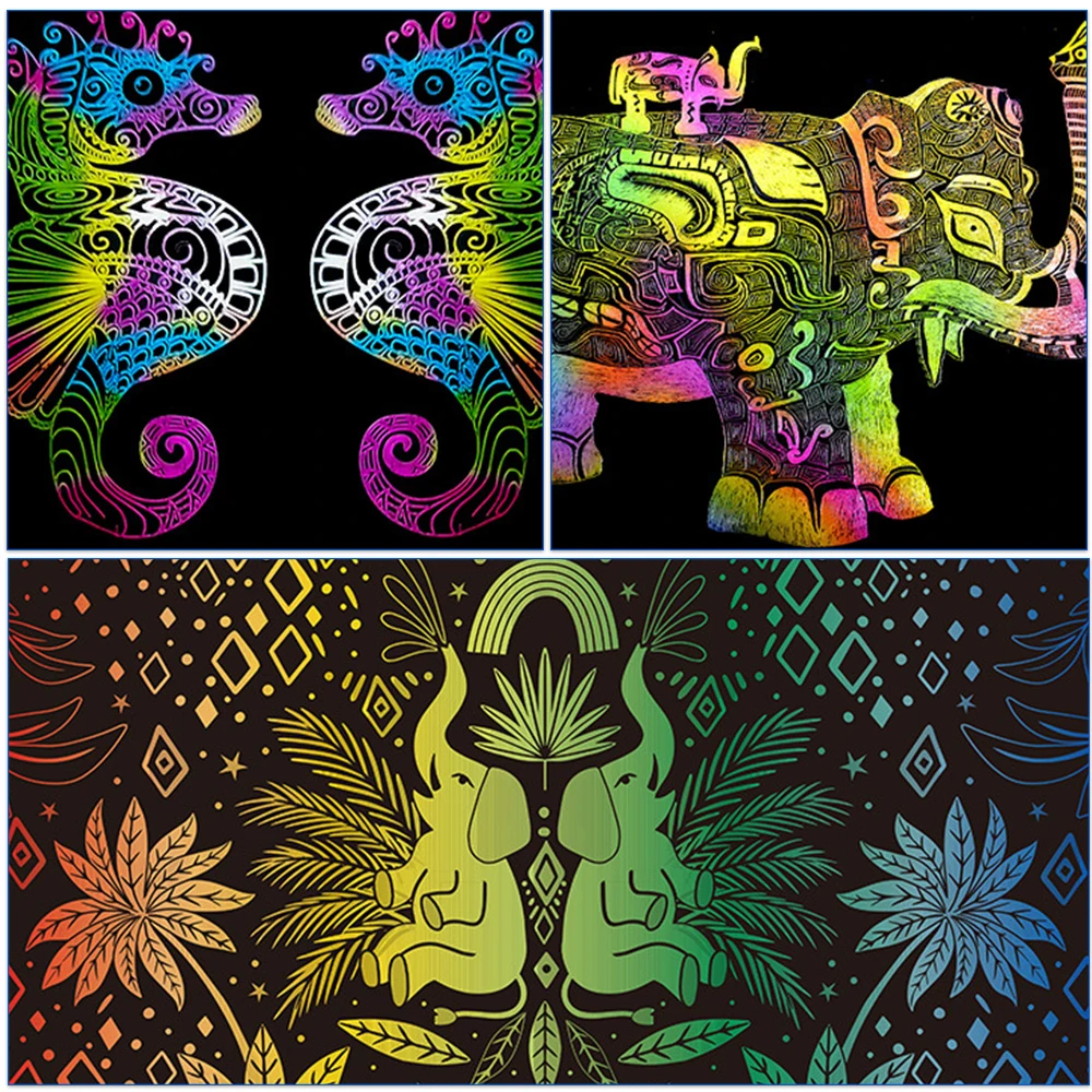 32K разноцветная бумага для скребка 13x19 см (50 шт.); Цветная бумага для скребка A4 18x25 см (10 шт.)