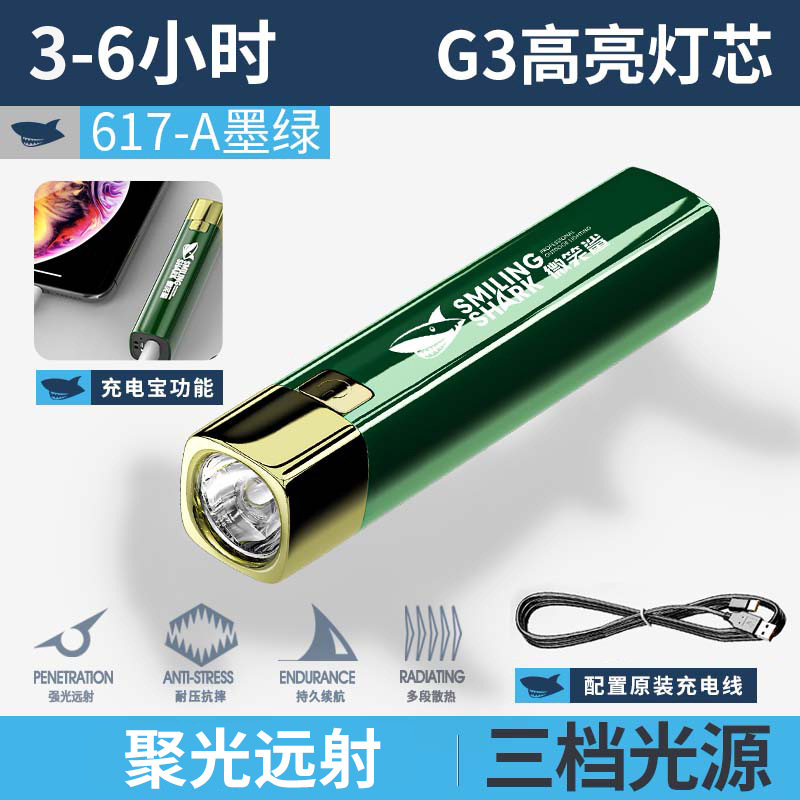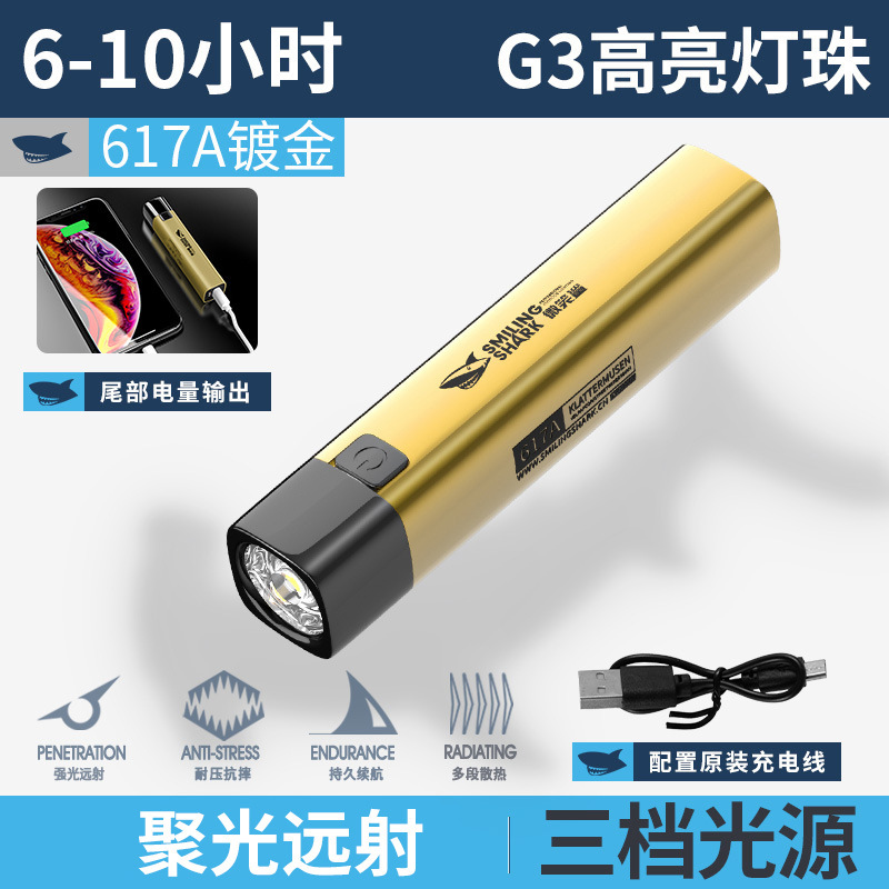 Smile Shark сильный свет портативный фонарик перезаряжаемый мини-студент маленький домашний свет на открытом воздухе дальний свет светодиодный фонарик
