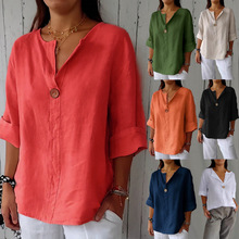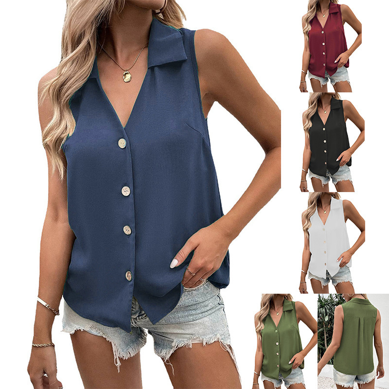 2023 Европа и США трансграничная летняя новая женская однотонная Свободная шифоновая рубашка с V-образным вырезом без рукавов, жилет на пуговицах, рубашка для женщин