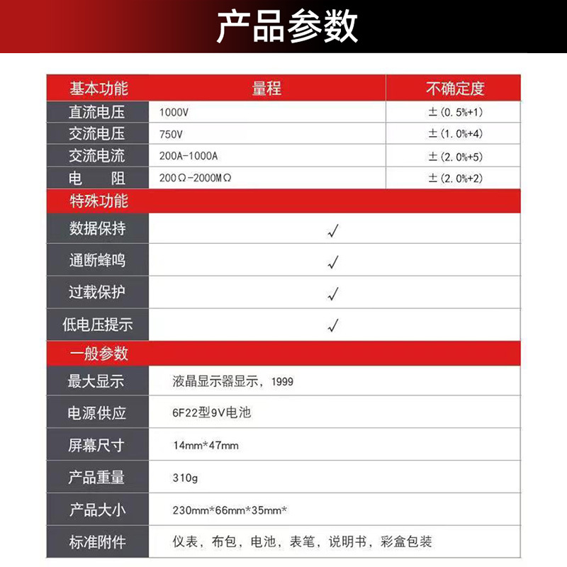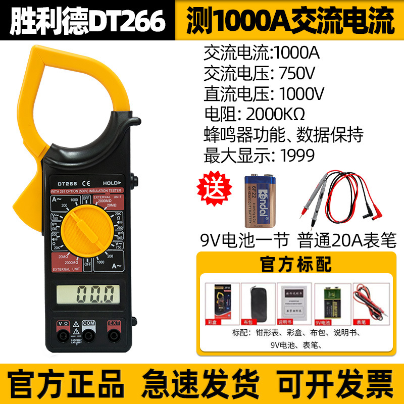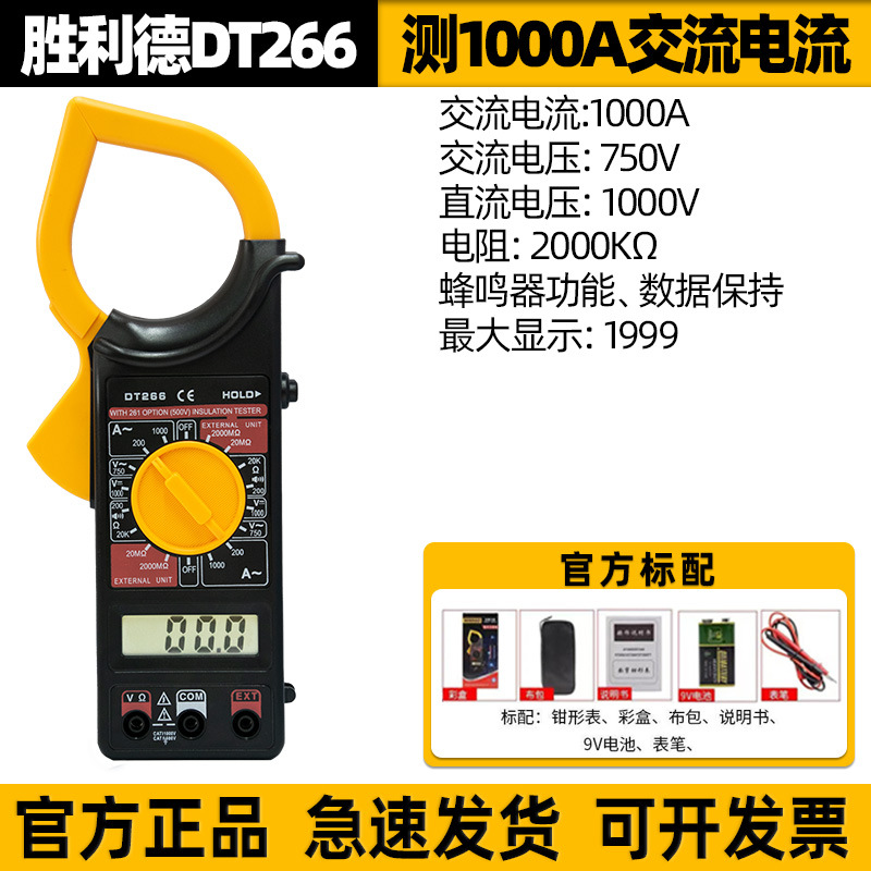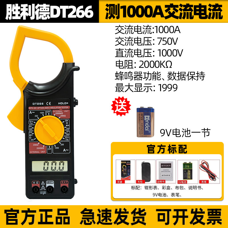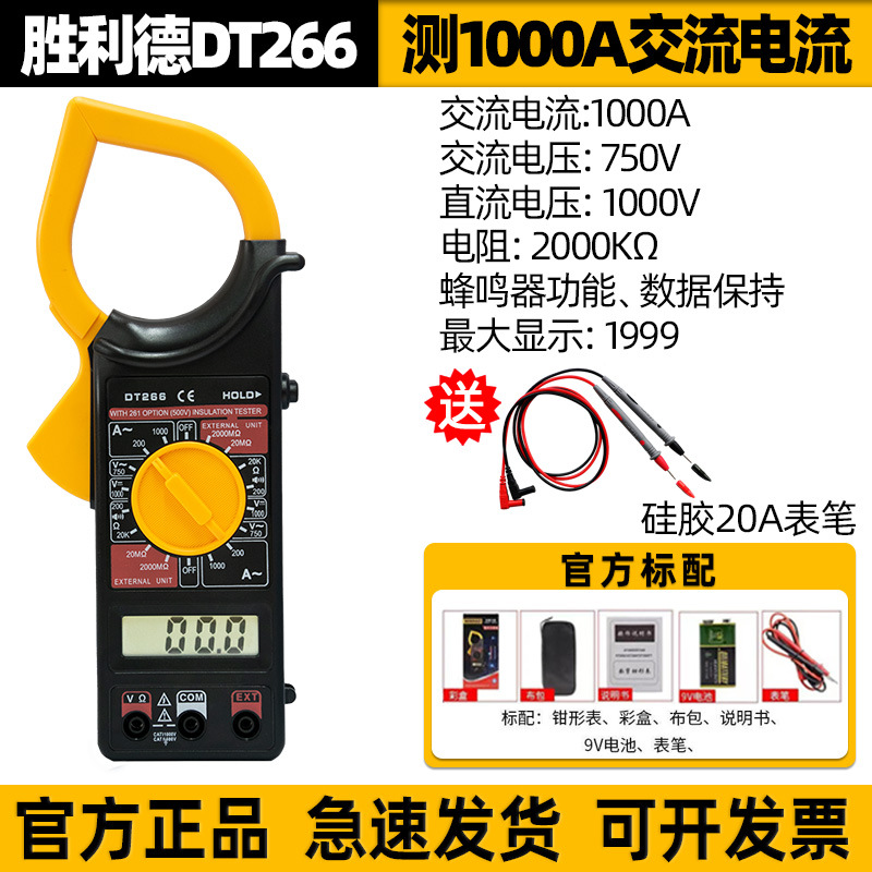 DT266 Цифровой AC Большие клещи Мультиметр Цифровой дисплей Зажим Амперметр Техническое обслуживание Электрик Универсальный счетчик Зуммер