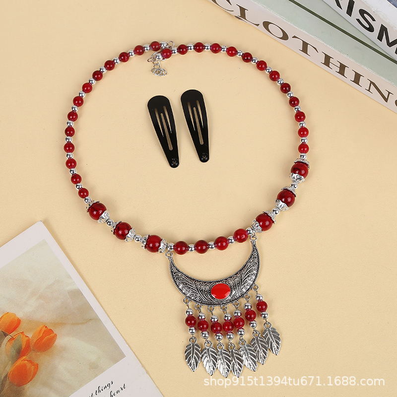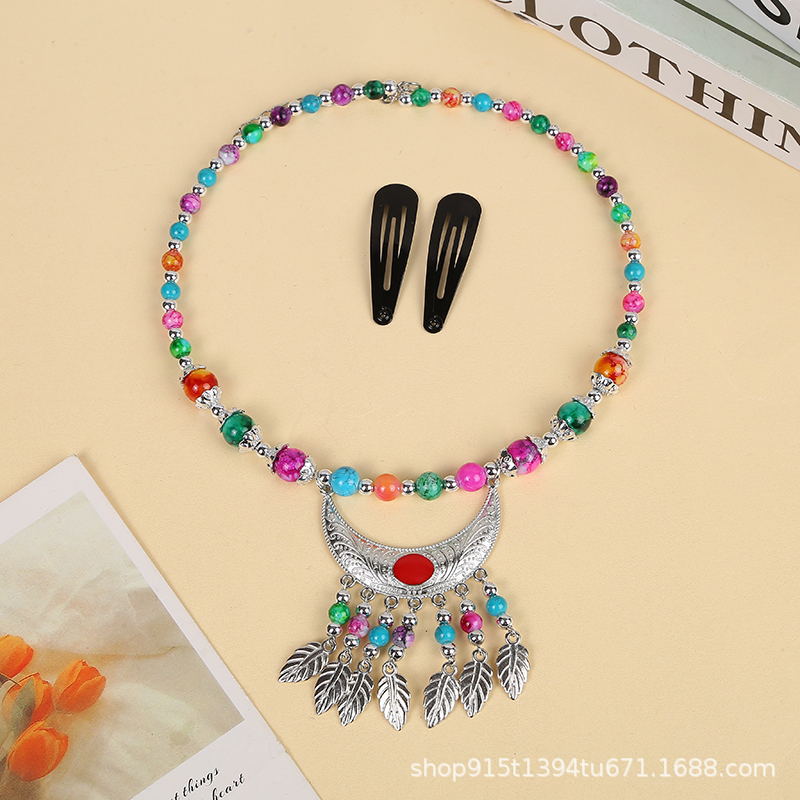 Оптовая продажа ретро этнический стиль воротник ожерелье головной убор экзотический Тибетский головной убор месяц кисточка Путешествия Фото аксессуары