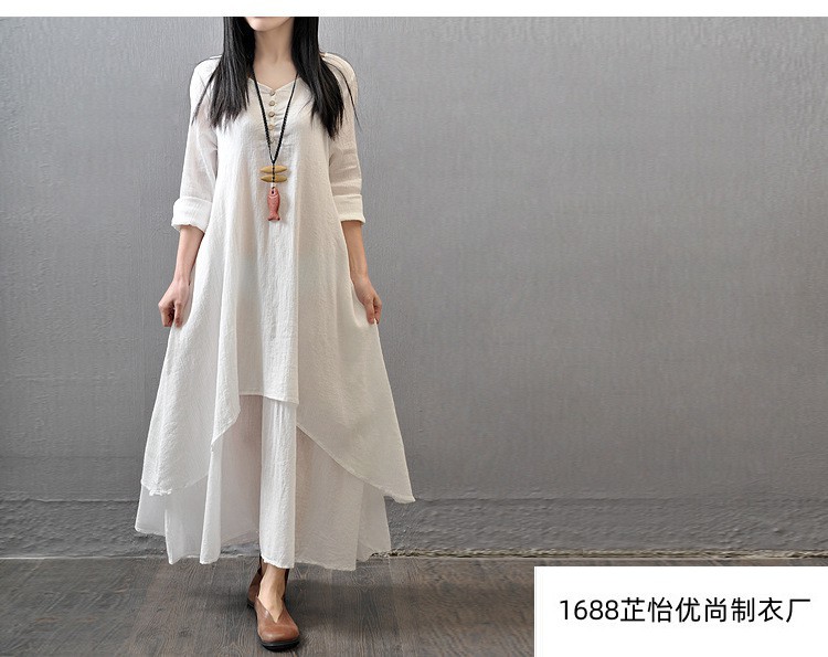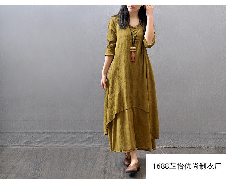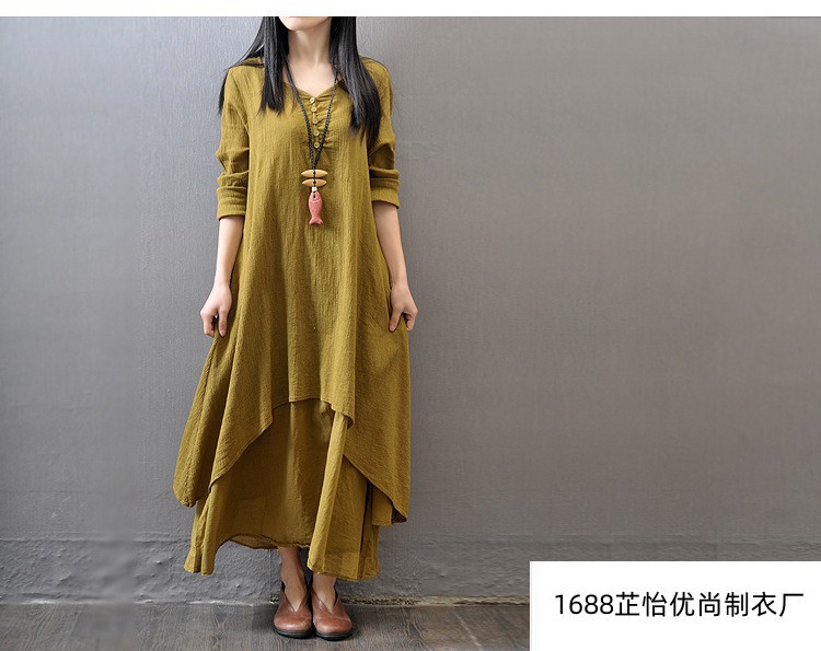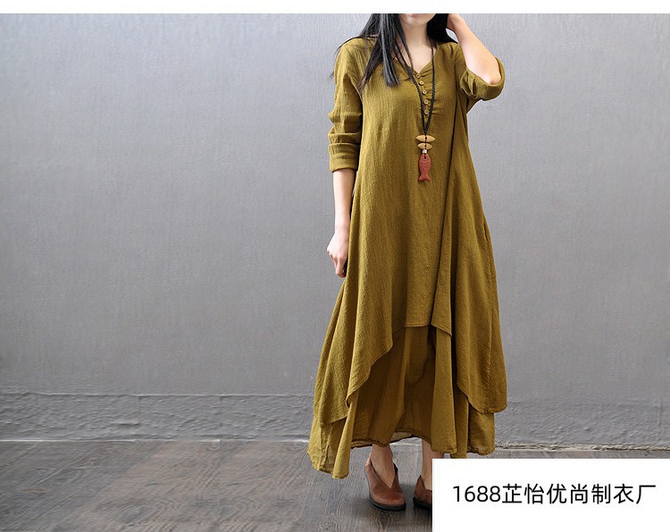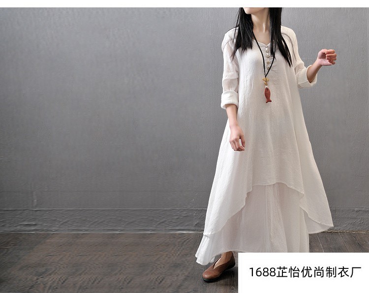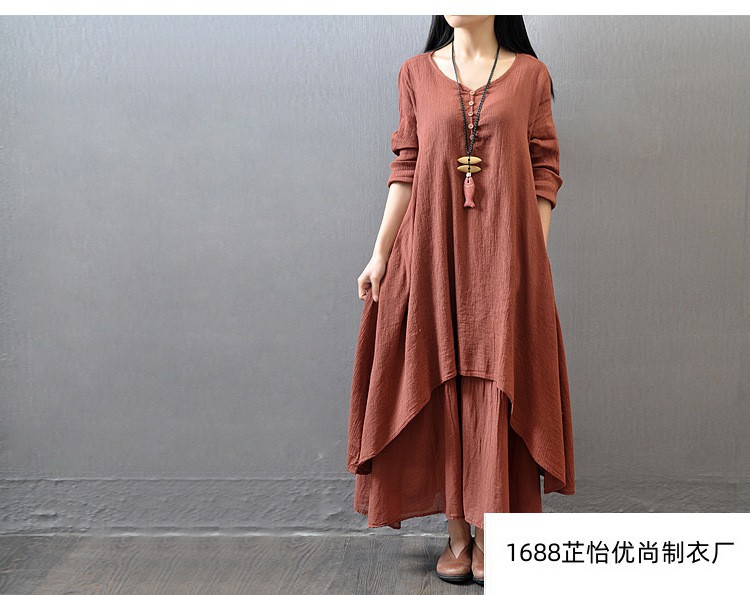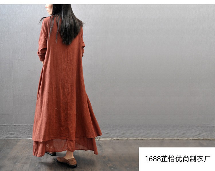 2023 Новое высококачественное поддельное длинное платье из двух частей художественное большое свободное льняное платье с длинным рукавом из хлопка и льна