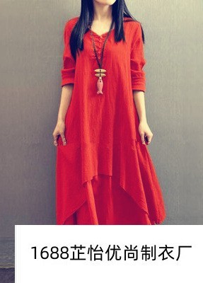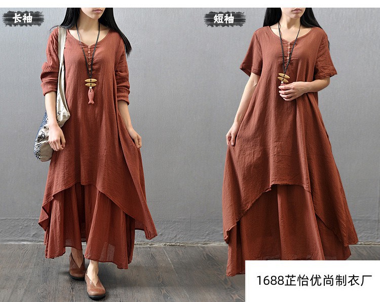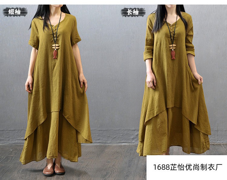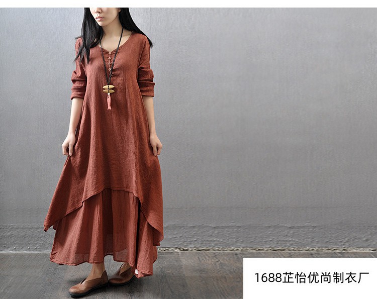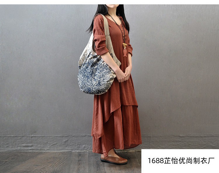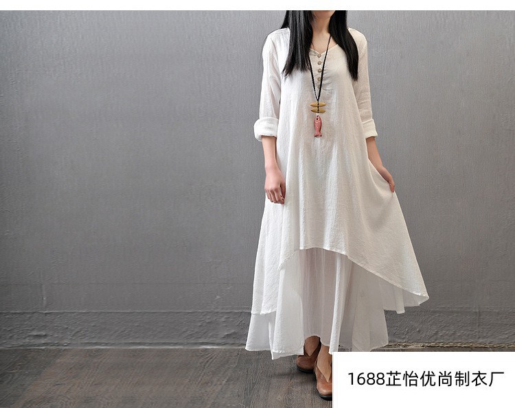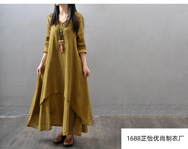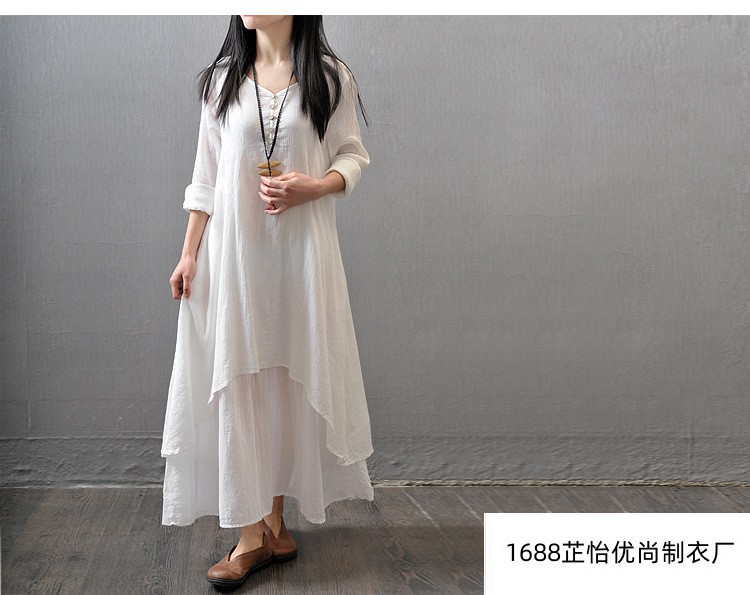 2023 Новое высококачественное поддельное длинное платье из двух частей художественное большое свободное льняное платье с длинным рукавом из хлопка и льна