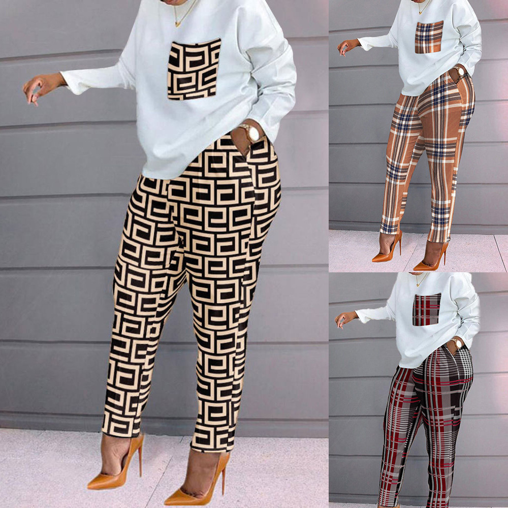Трансграничные женские новые европейские и американские модные брюки с длинным рукавом и принтом Amazon, свободный Женский Повседневный костюм больших размеров
