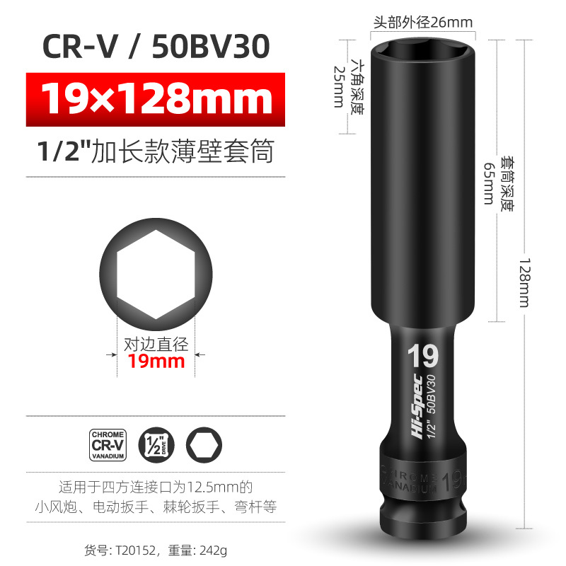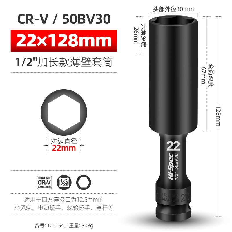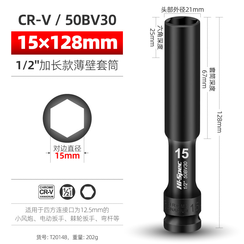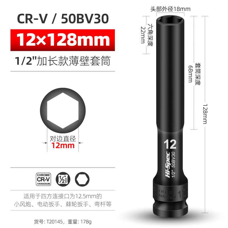 Внутренний шестигранный пуловер углубляет втулку пушки 1/2 удлиненной тонкостенной втулки большой летающий электрический гаечный ключ