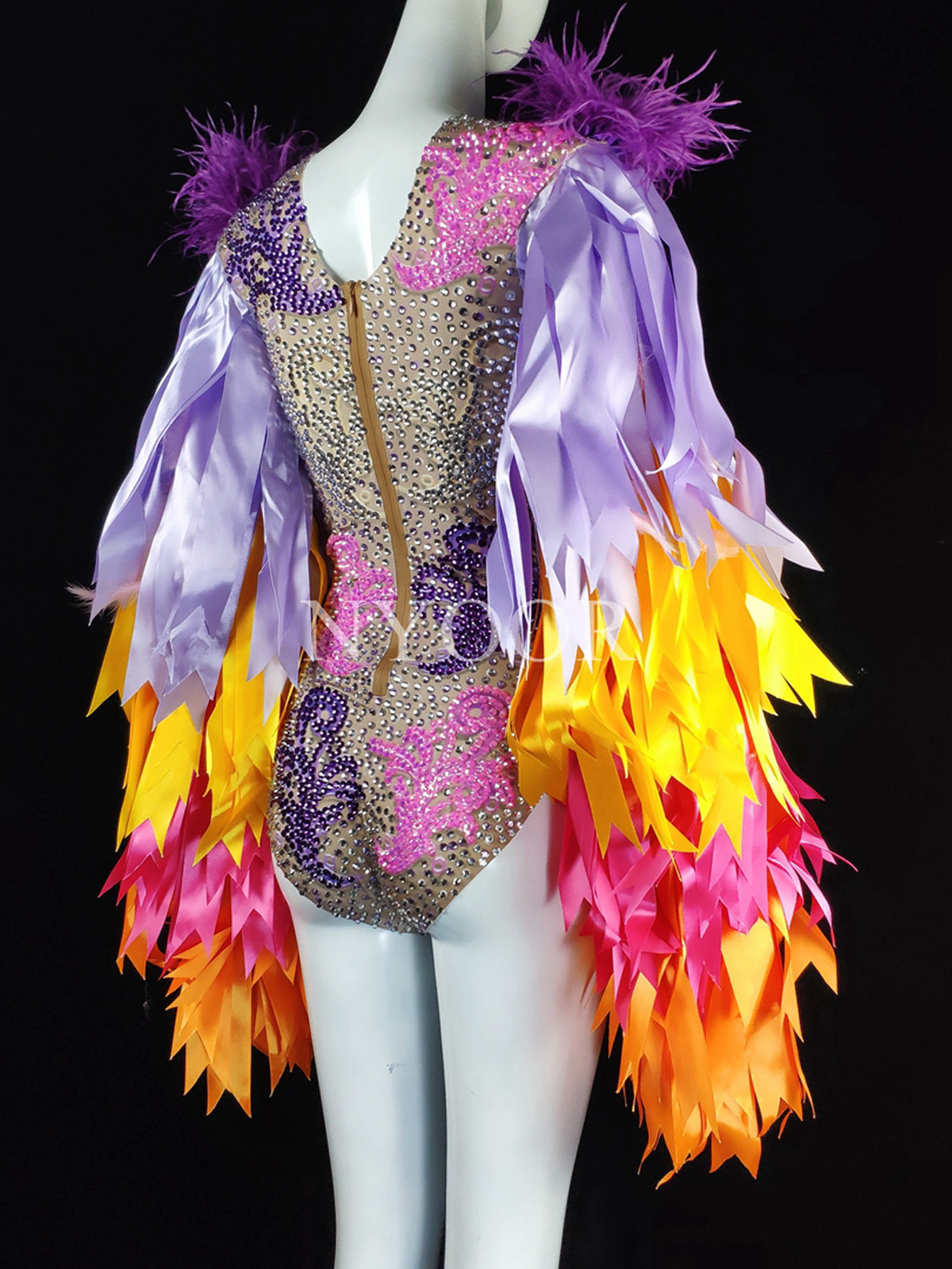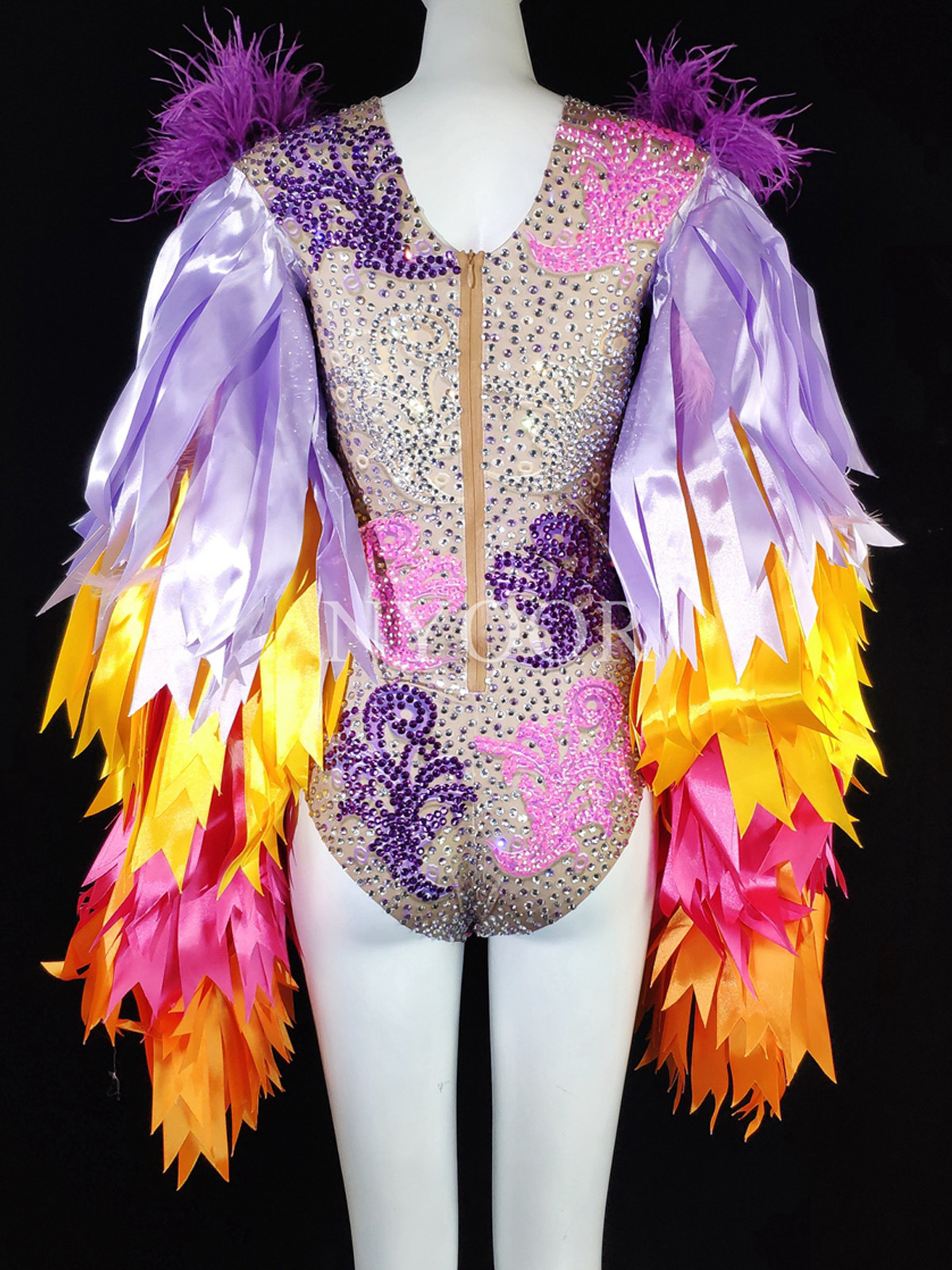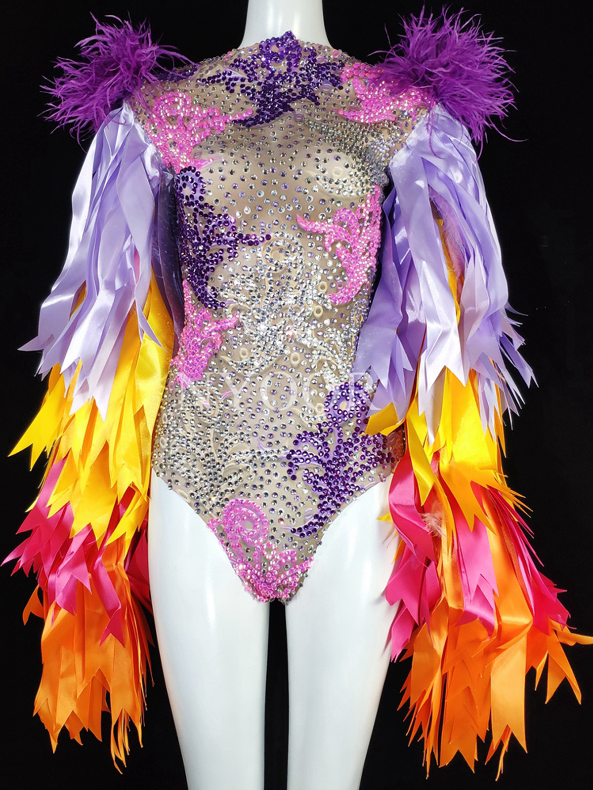 Amazon горячая Распродажа певица танец сексуальный блестящий Бриллиантовая лента перо стрейч комбинезон костюм для выступлений для женщин