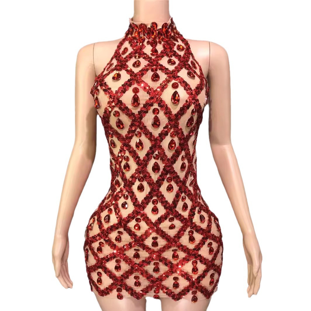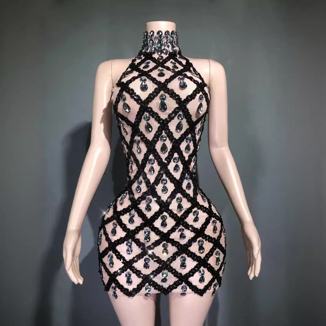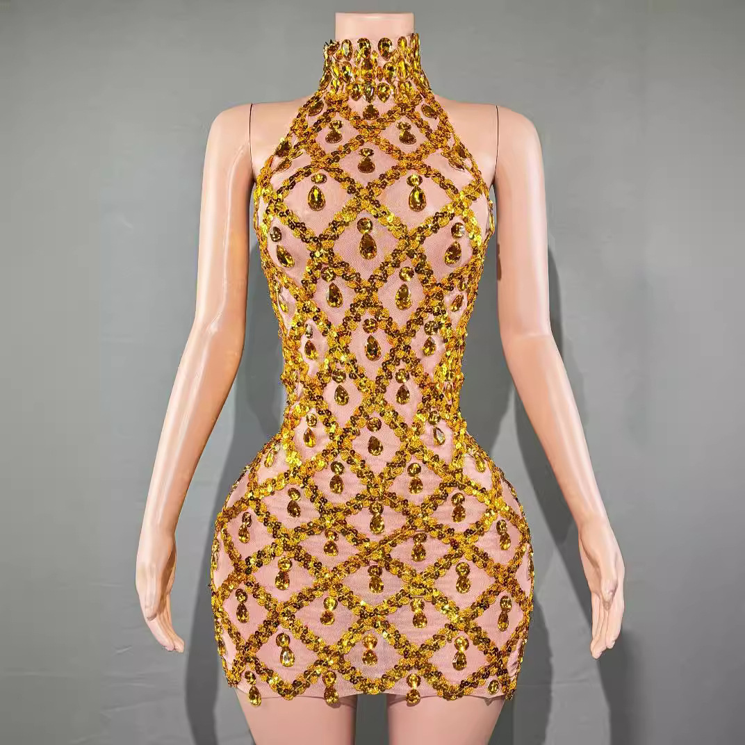 Популярное за рубежом в Европе и Америке короткое вечернее платье для женщин, модель "автомобильный дизайн", с блестками, стразами и эластичной сеткой, в стиле диджея.