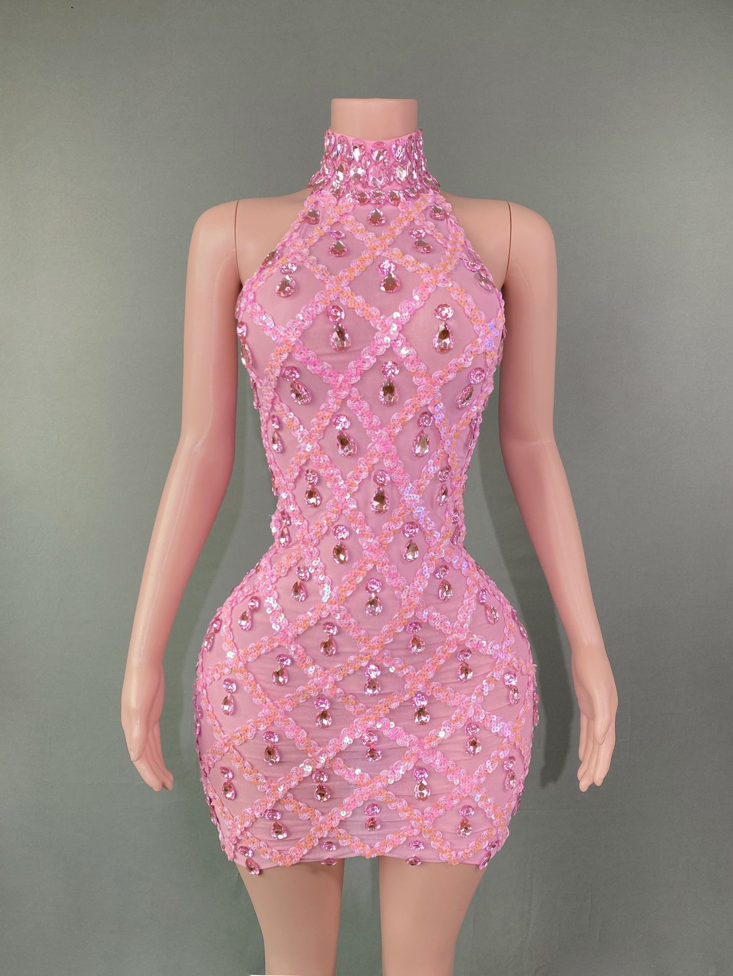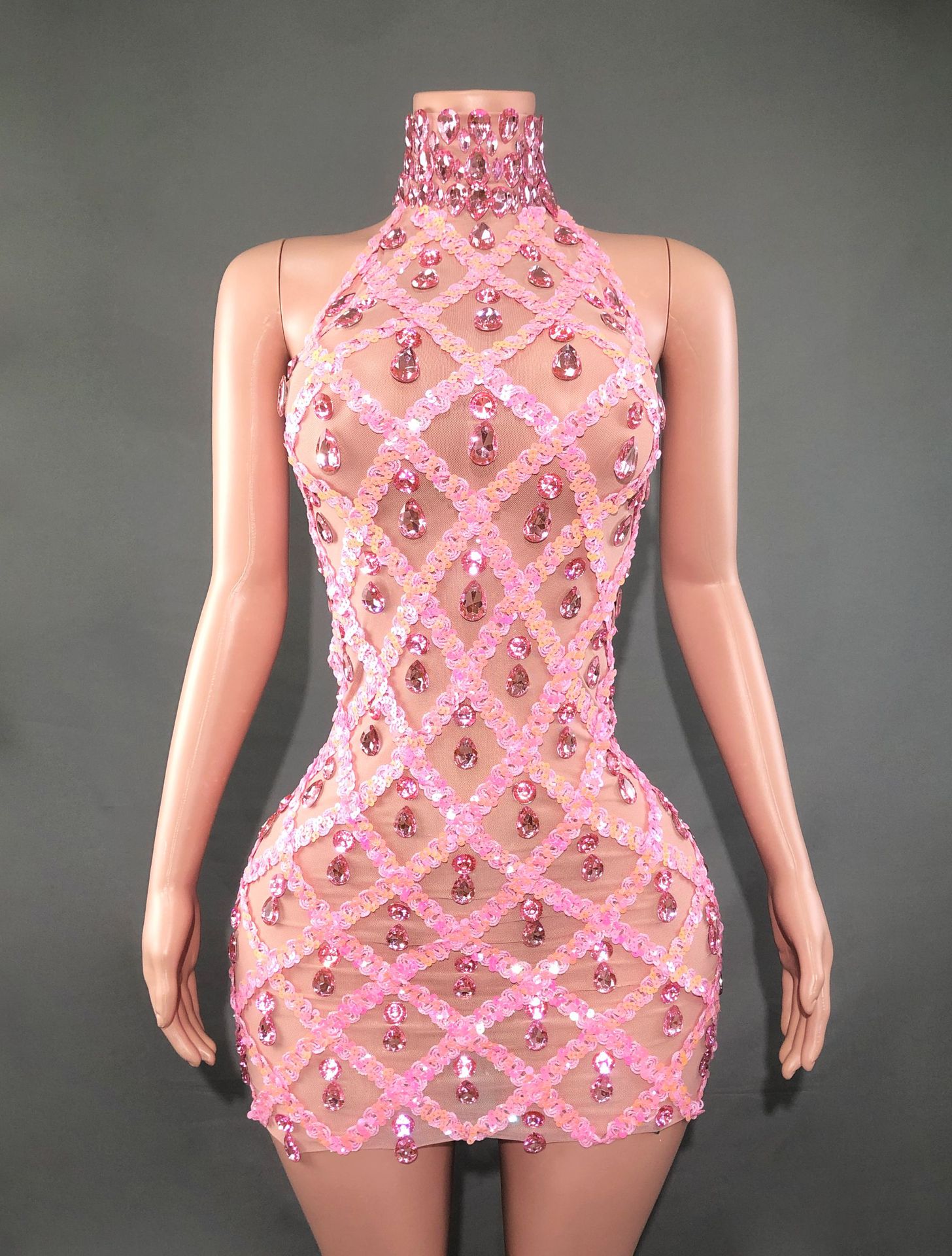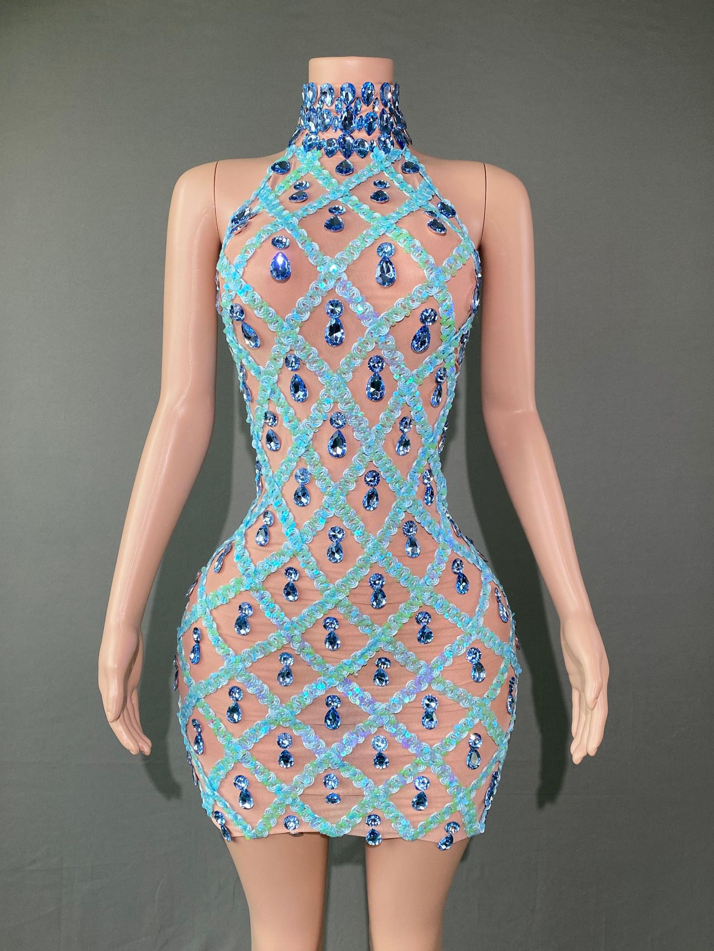 Популярное за рубежом в Европе и Америке короткое вечернее платье для женщин, модель "автомобильный дизайн", с блестками, стразами и эластичной сеткой, в стиле диджея.