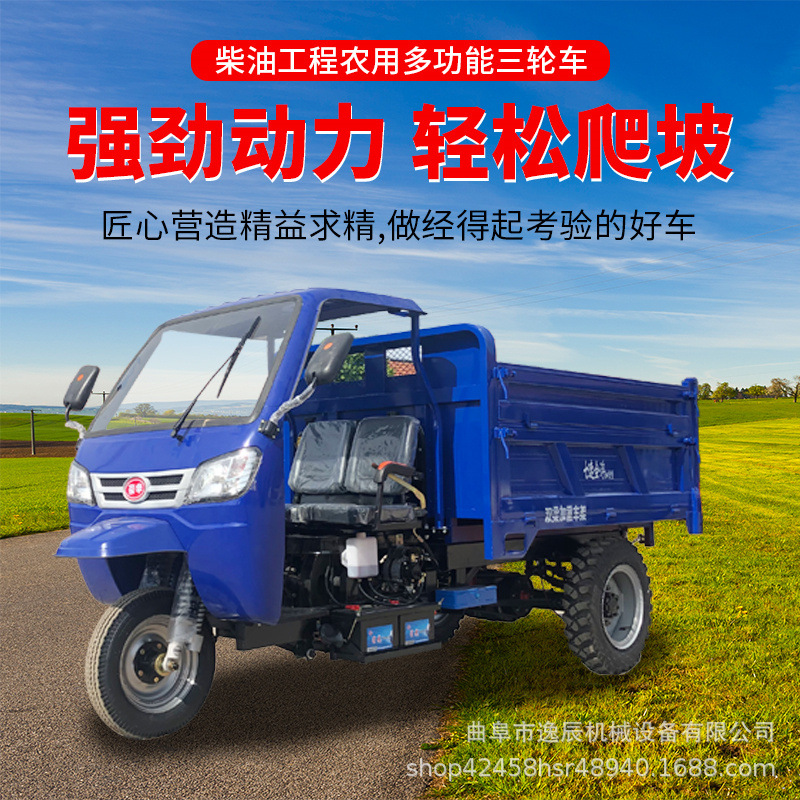 电启动液压自卸工程运输车 全封闭拉毛竹柴油三轮车 大载重动力强