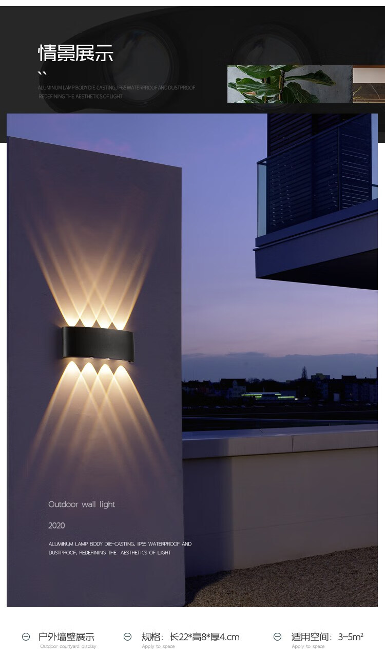 Светодиодный уличный водонепроницаемый настенный светильник, настенный светильник для двора, дома, отеля, коридора, балкона, внутренний и наружный светильник для спальни с верхним и нижним светом