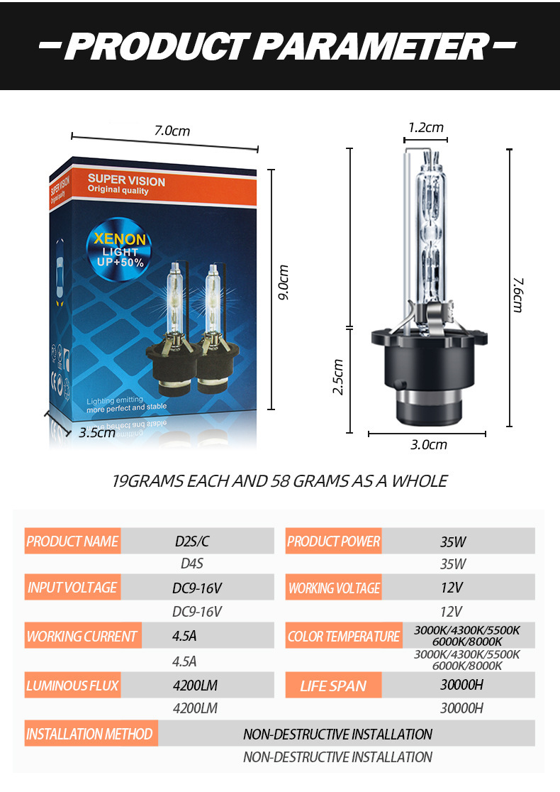 Ксеноновая лампа D1S для автомобиля, кварцевая трубка D2S, фара D3S, модифицированная высококонцентрированная ксеноновая лампа для автомобиля, высокая яркость