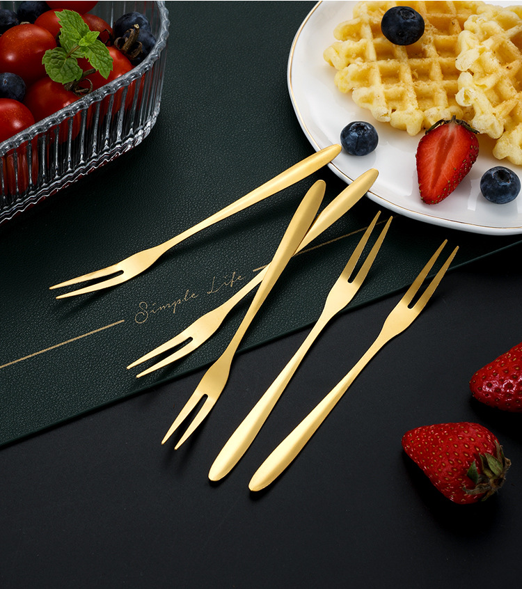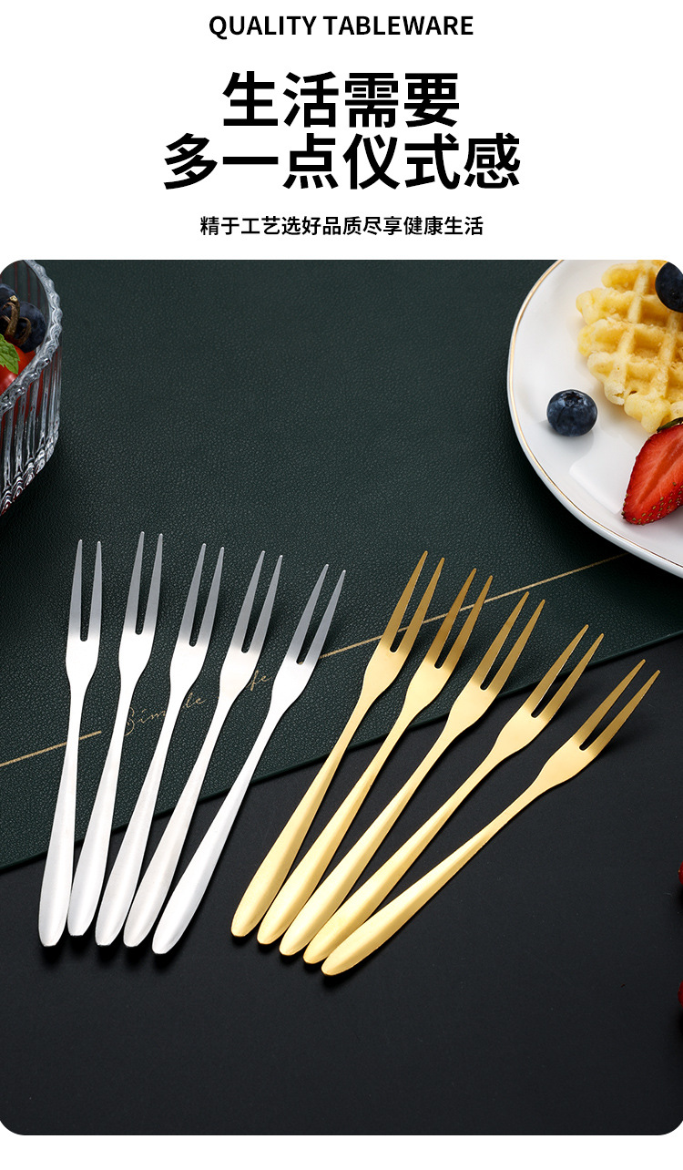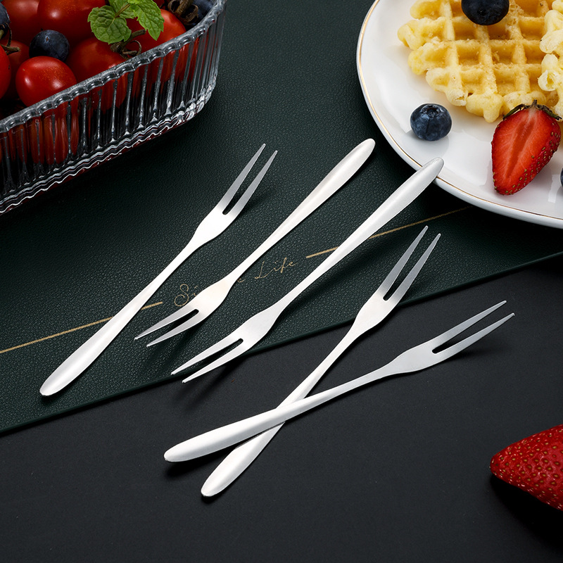 Вилка для фруктов из нержавеющей стали Бытовая креативная вилка для фруктов с двумя зубьями торт Лунный торт вилка отель Западная Десертная Вилка оптом