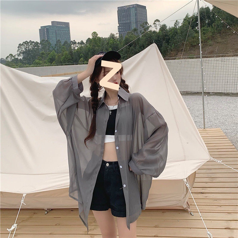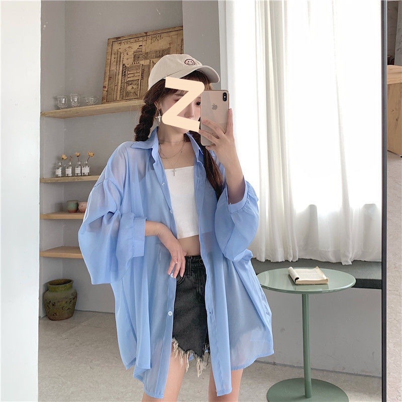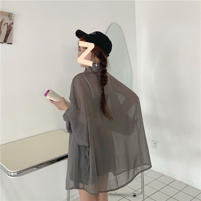 Солнцезащитная одежда, женский внешний кардиган, тонкая верхняя одежда, лето 25, новая шифоновая рубашка большого размера, свободная элегантная рубашка в корейском стиле