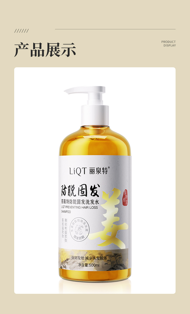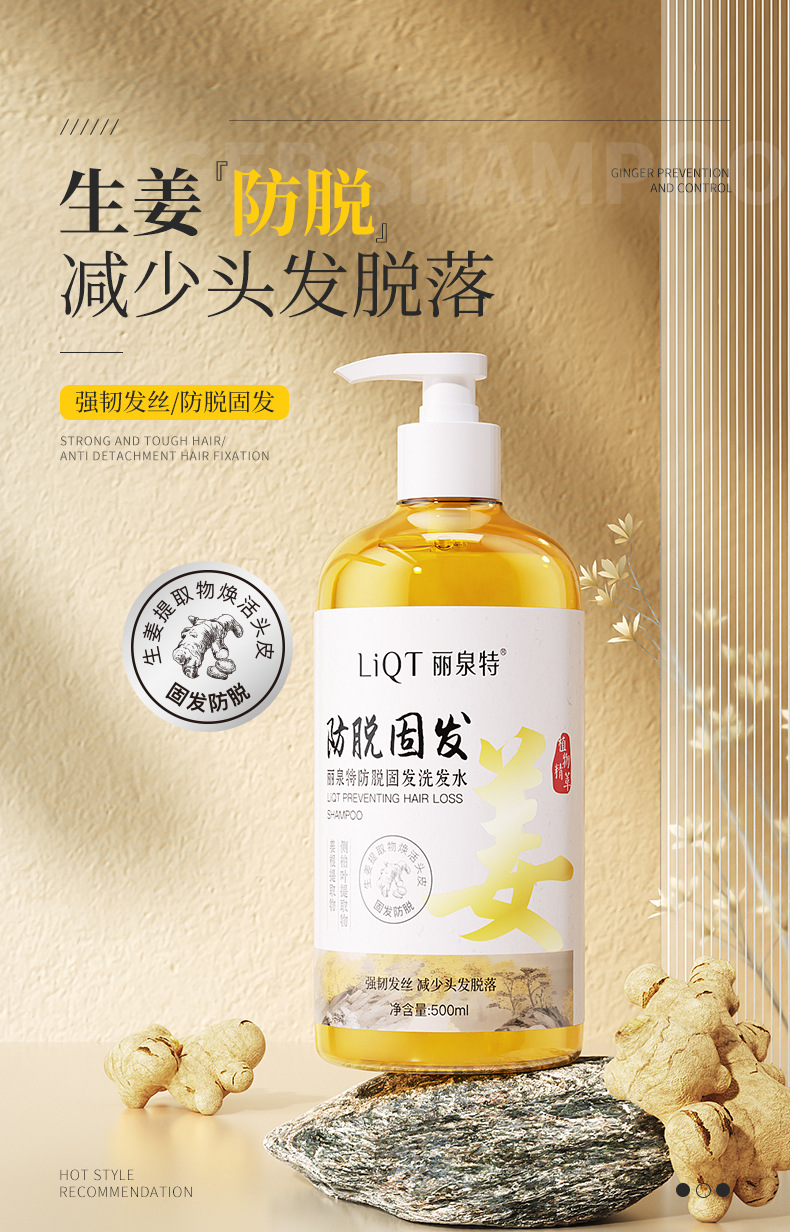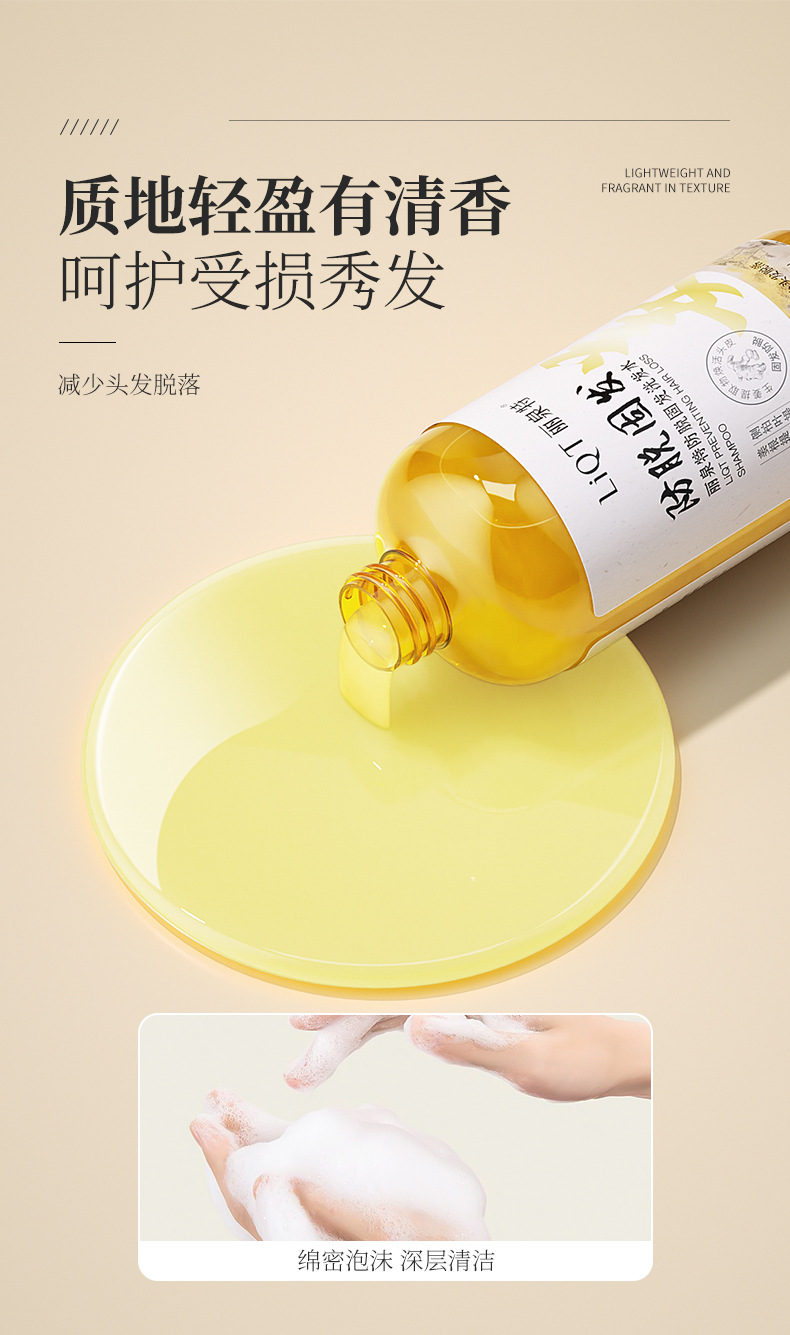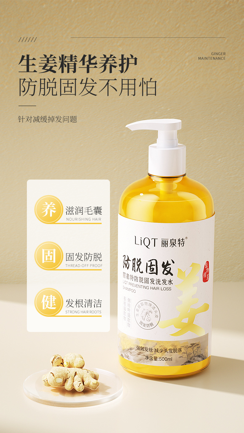 Liquan Special Rice Укрепляющий шампунь против выпадения волос 500 мл Сок имбиря Укрепляющий шампунь против выпадения волос с семенами камелии и листьями Platycladus