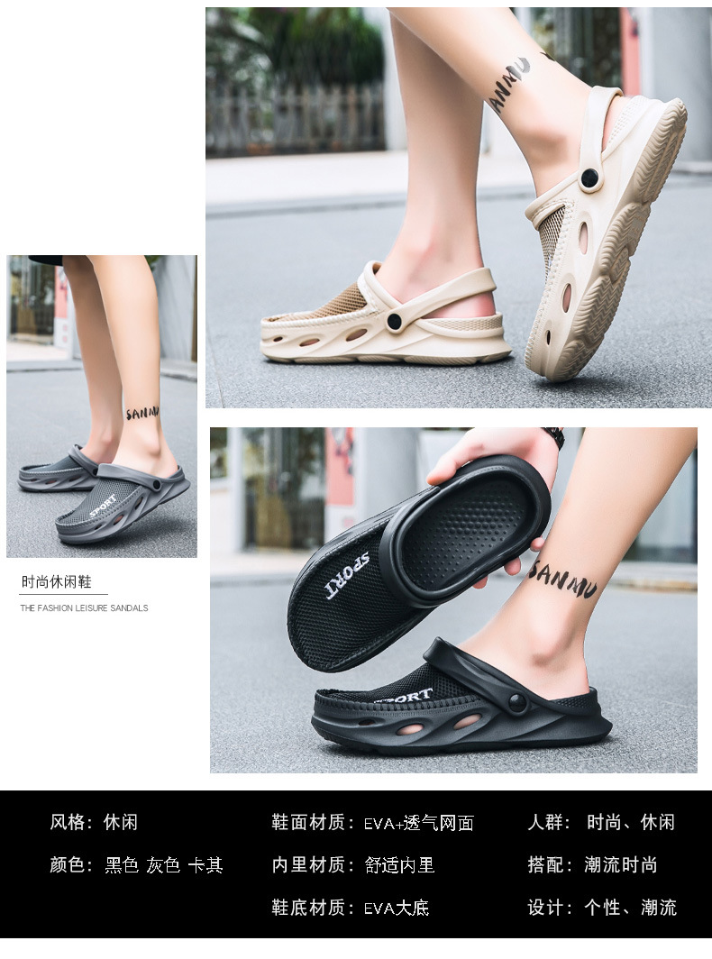 2025 летняя внешняя торговля сетка сандалий полупанк повседневное птичье гнездо пещерные туфли мужской пляж ленивый пол тапочки большого размера