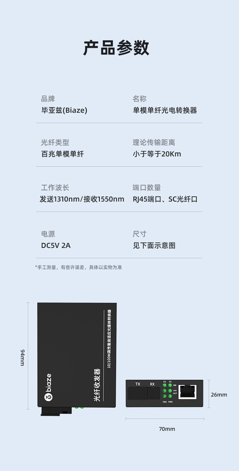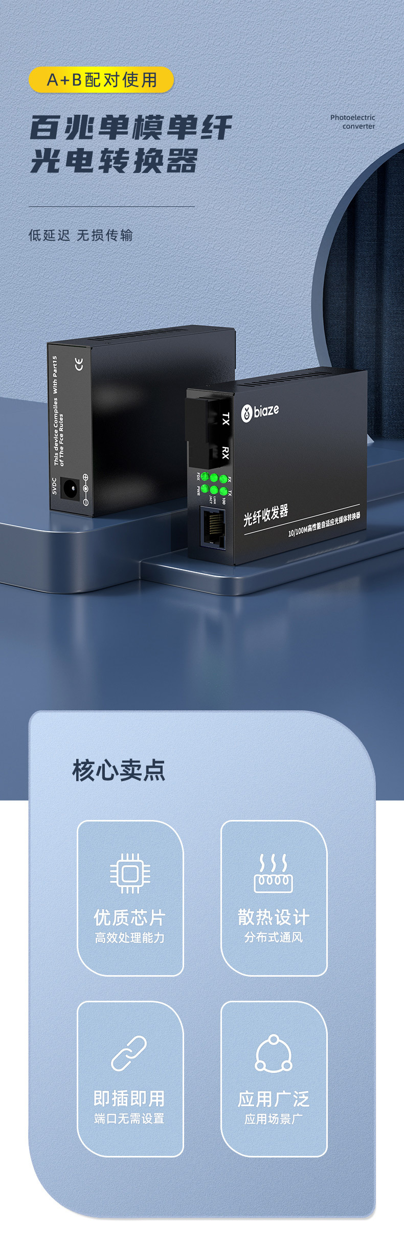 Biaz волоконно-оптический трансивер 100 м пара одномодовый одноволоконный фотоэлектрический Преобразователь сеть оптический трансивер сеть