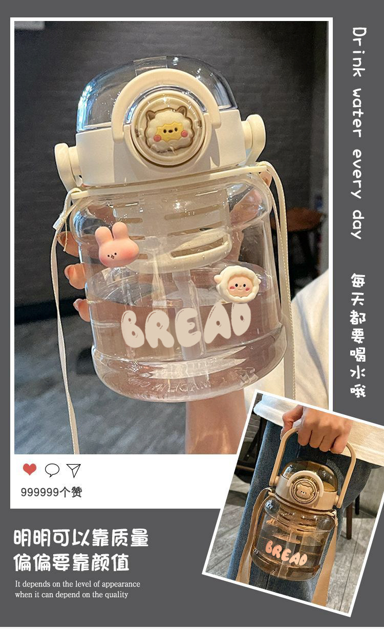 Чашка для воды интернет-знаменитостей Женская пластиковая чашка большой емкости Соломенная тонна ведро Тонна чайник Портативный чай Разделение воды Чай Большая чашка для живота