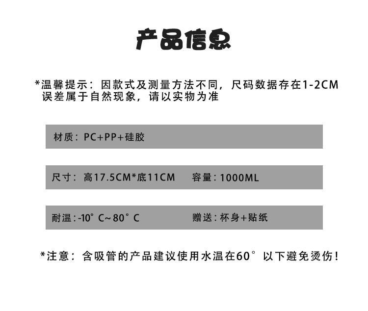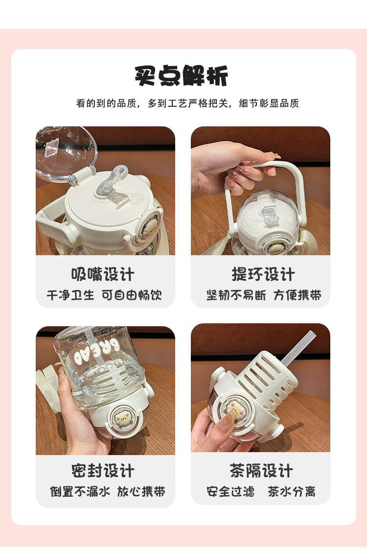 Белый-1000 мл (с независимым чайным отсеком + ремешок); Розовый-1000 мл (с независимым чайным отсеком + ремешок); Желтый-1000 мл (с независимым чайным отсеком + ремешок); Коричневый-1000 мл (включая отдельное чайное отделение + ремешок); C белый живот Кубок 1600 мл (мультфильм наклейка + Кубок мешок)