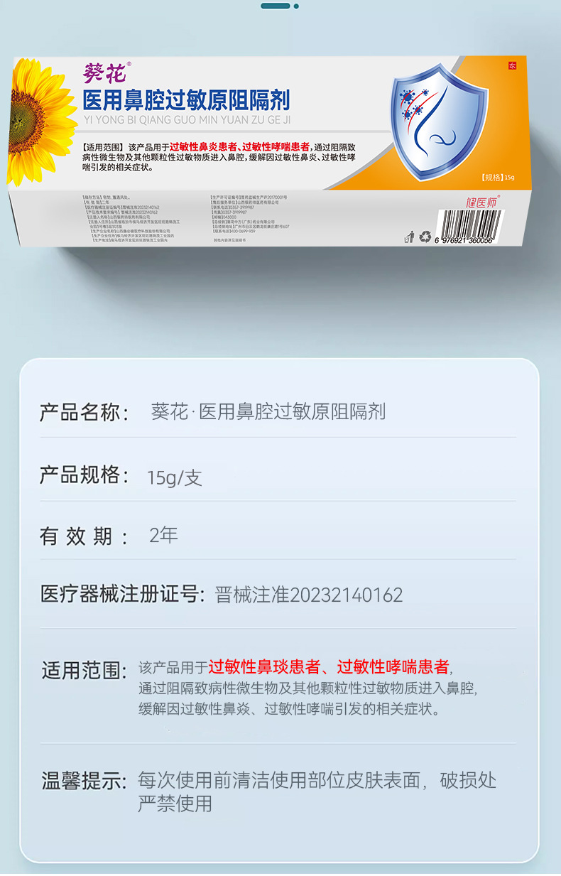 Медицинский назальный блокатор аллергенов Sunflower: облегчает аллергический ринит, астму, успокаивающая мазь для носа, гель от ринита оптом