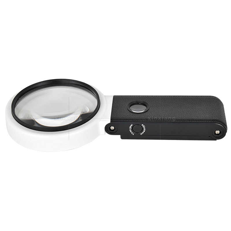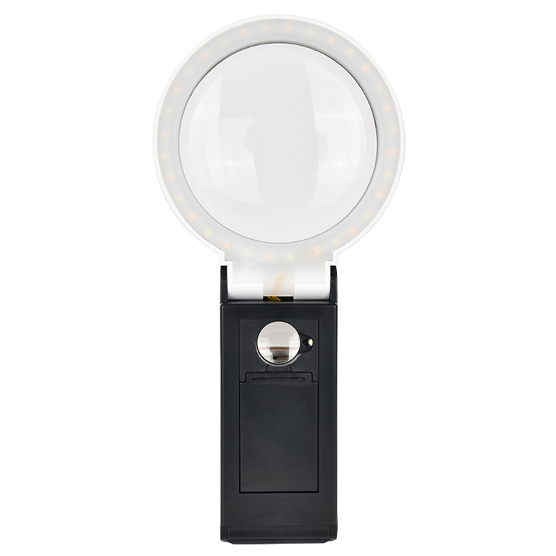 Холодный и теплый свет Трехцветная лампа ручной складной Настольный увеличительное стекло для чтения 25 раз идентификация коллекция пожилых людей HD