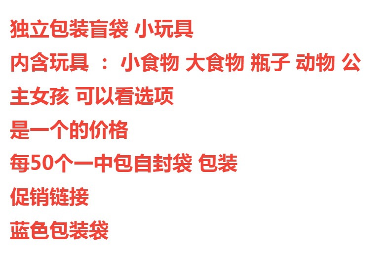 Маленькая Еда (слепая сумка) 1; Бутылка (Слепой Мешок) 1; Животное (Слепой Мешок) 1; Принцесса Девушка (Слепой Мешок) 1; Комиссар (слепая сумка) 1; Большая Еда (Слепой Мешок) 1