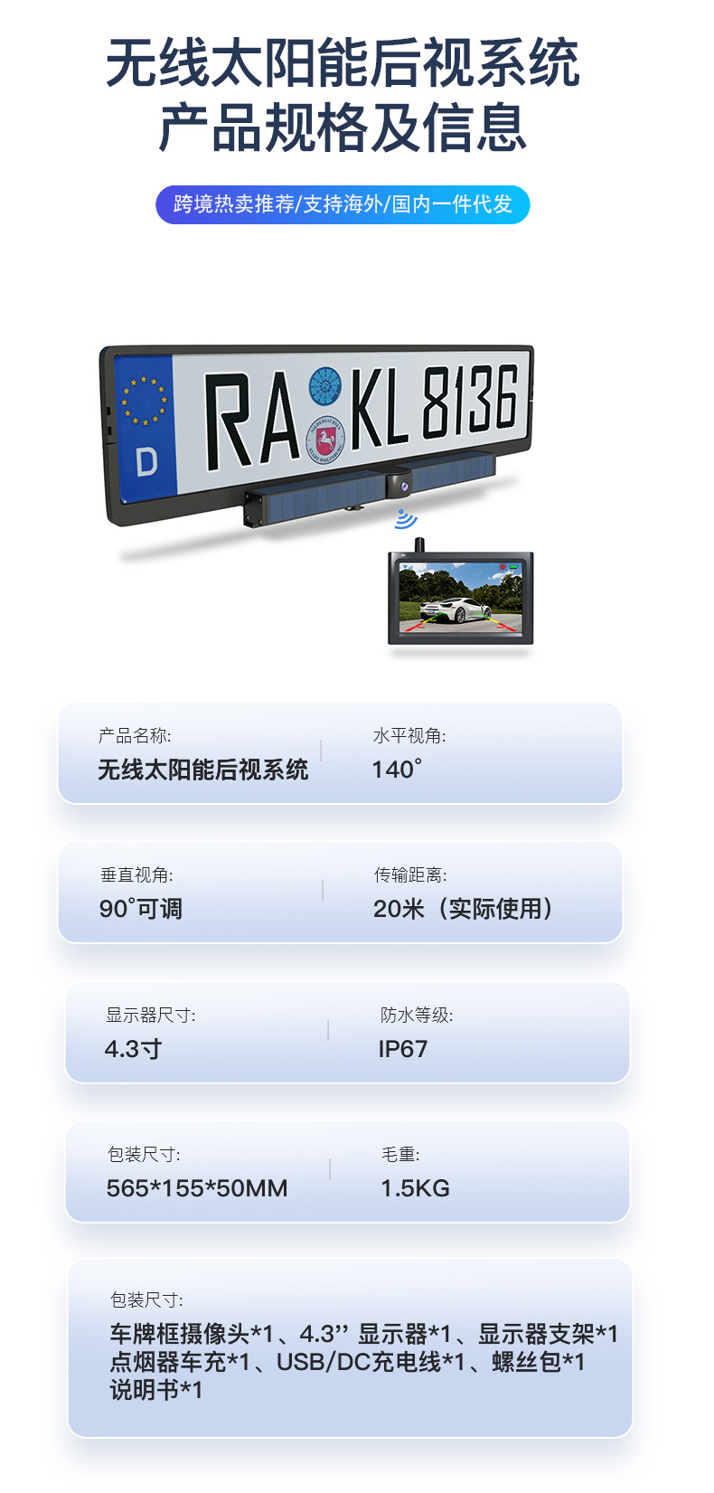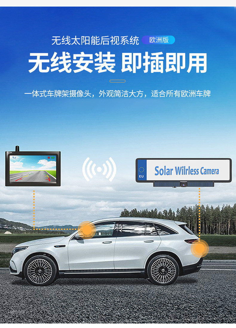 Трансграничная Простая установка системы заднего вида на солнечной энергии с реверсивным дисплеем автомобильной камеры с беспроводной передачей