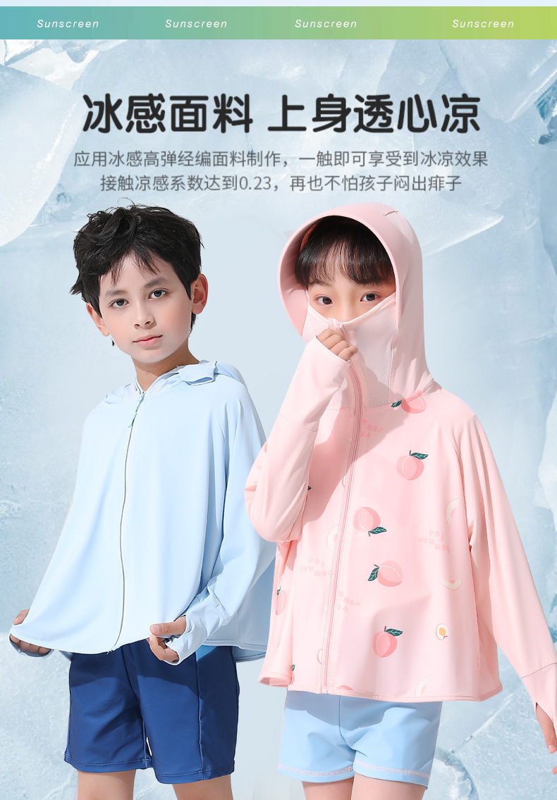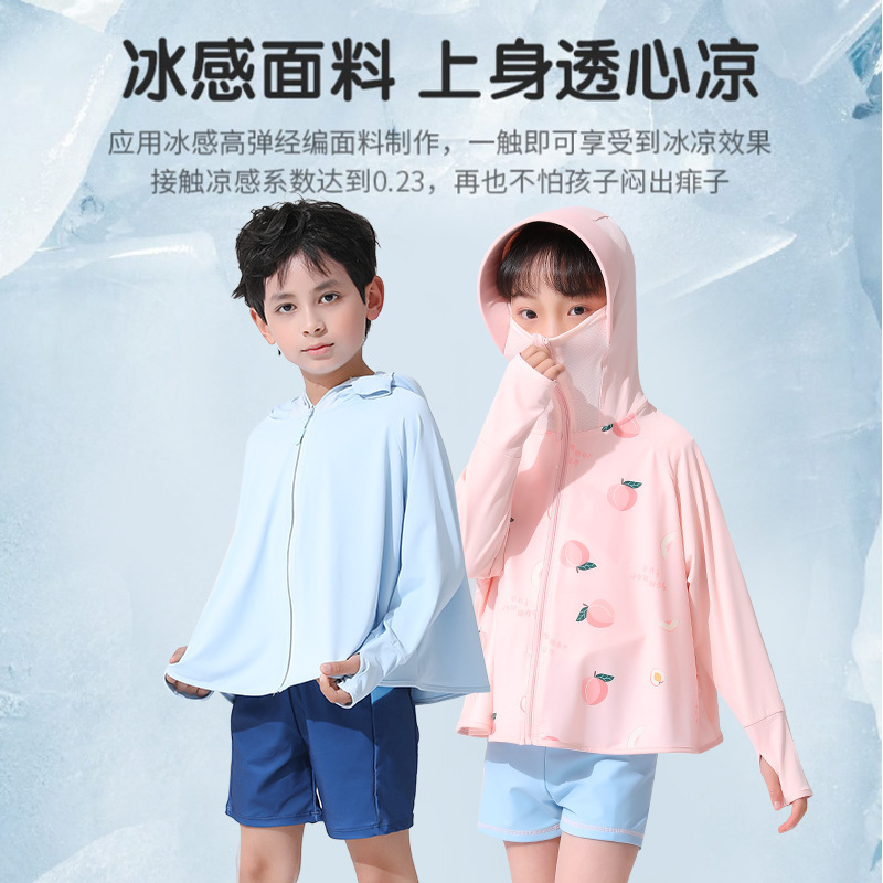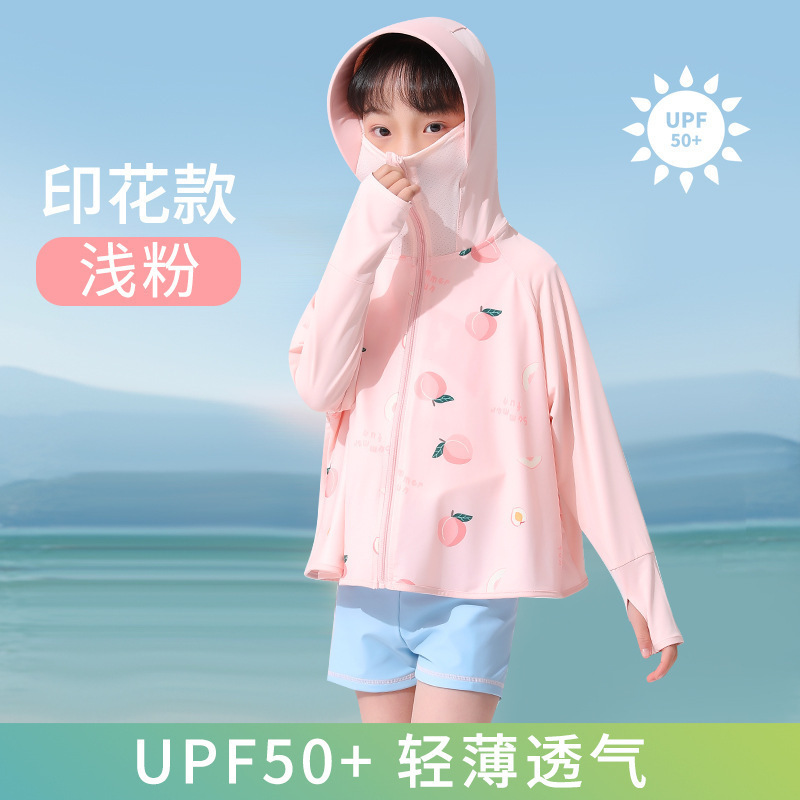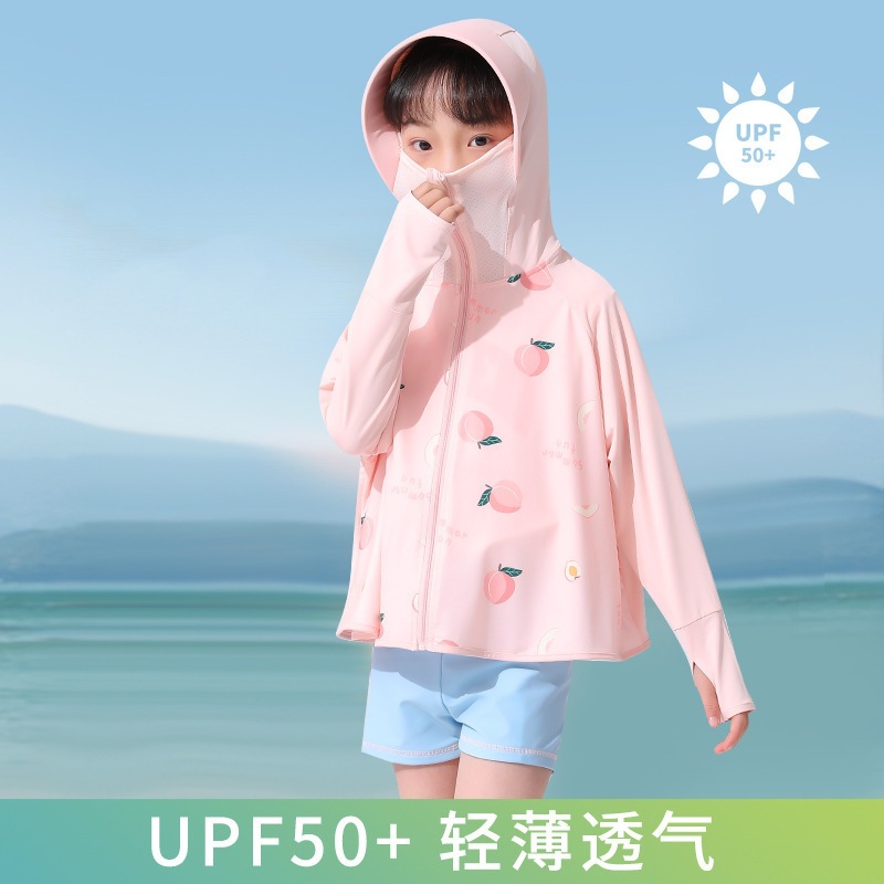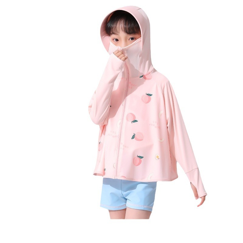 Детская Солнцезащитная одежда Ice Silk с персиковым принтом, летнее легкое пальто с капюшоном с защитой от ультрафиолета для мальчиков и девочек