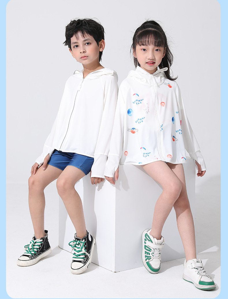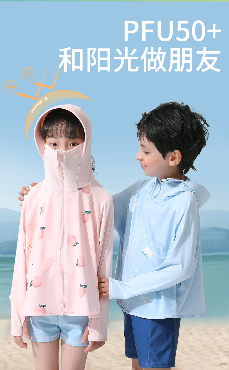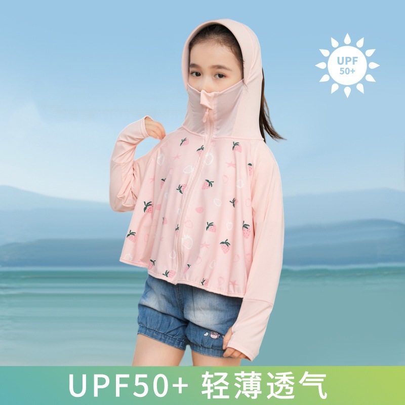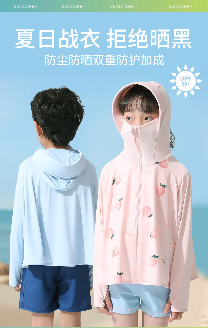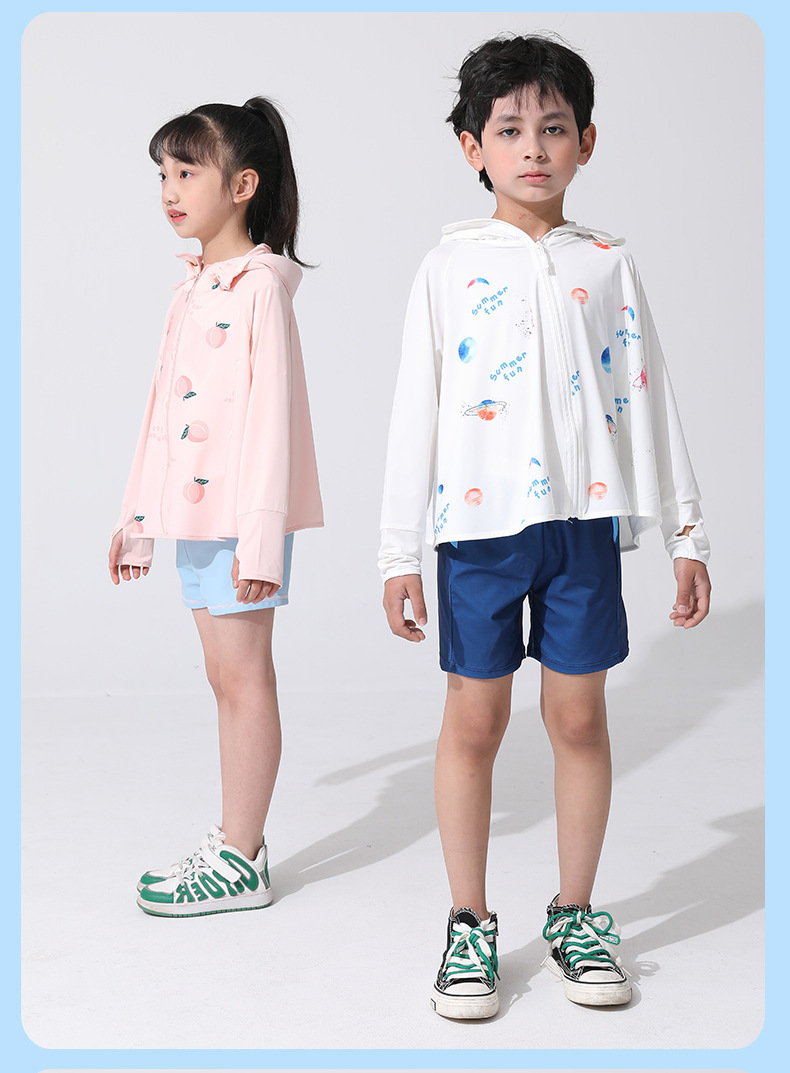 Детская Солнцезащитная одежда Ice Silk с персиковым принтом, летнее легкое пальто с капюшоном с защитой от ультрафиолета для мальчиков и девочек