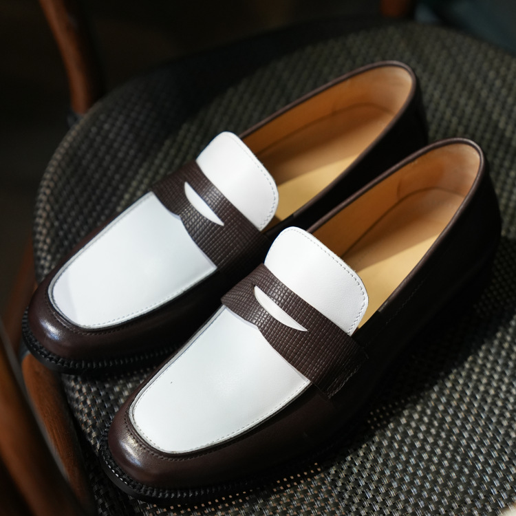 Цвет шампанского с цветными блоками ручной работы в стиле ретро с цветными блоками Британско-Американская Кожаная обувь без шнуровки флисовые британские повседневные Лоферы для мужчин