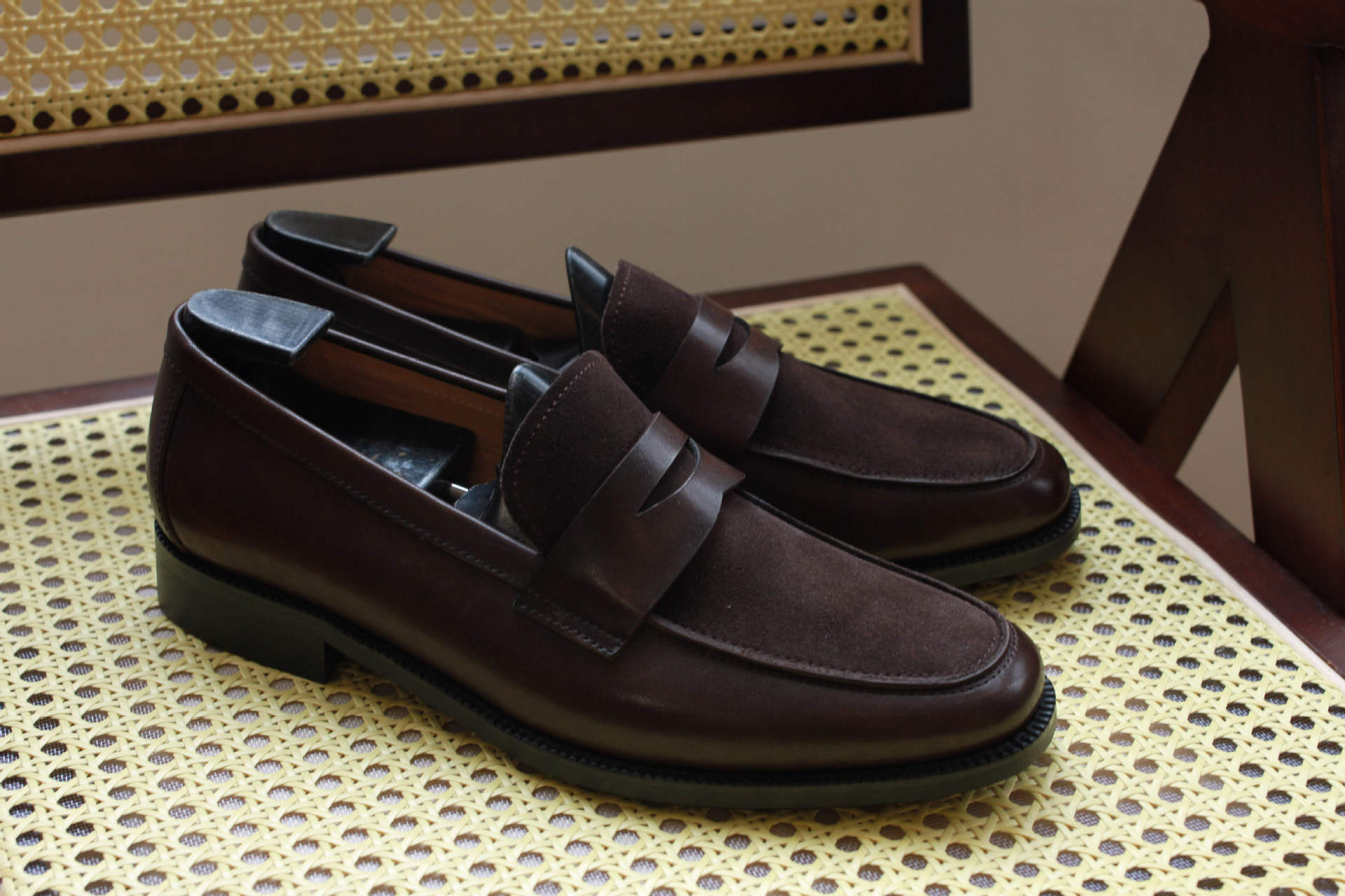 Темно коричневый; Кофе; черная замша; черный