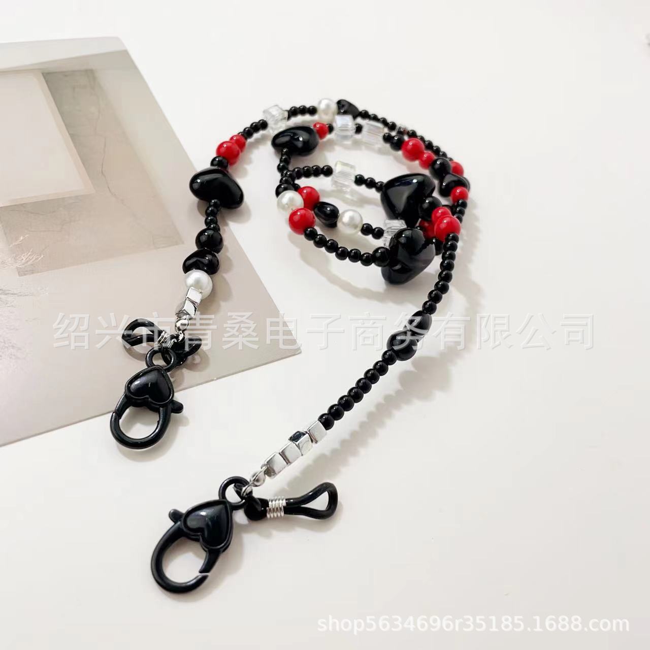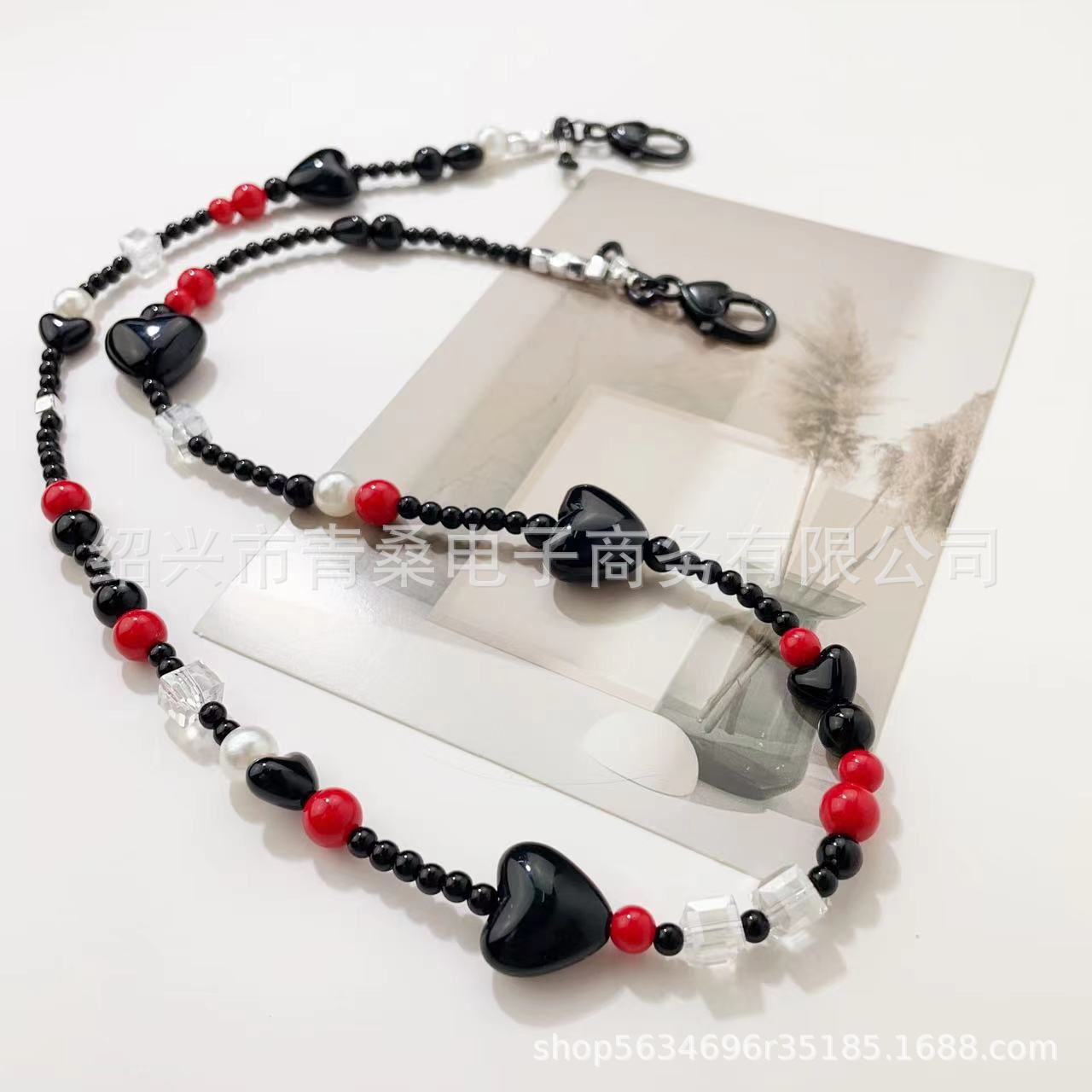 Новая простая Ретро черная любовь акриловая бисерная цепочка для мобильного телефона цепочка для очков цепочка маска цепочка