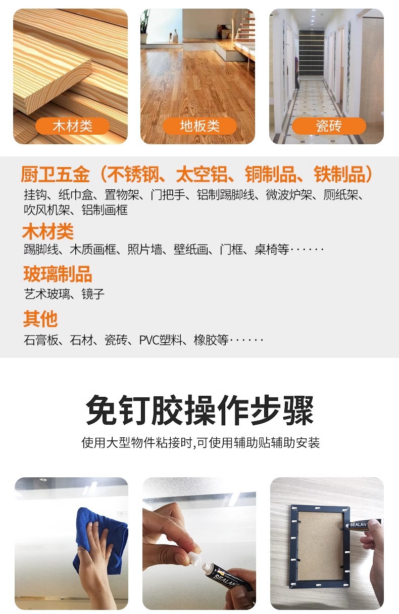 Мощный клей для структурных работ без сверления, для крепления на стенах кухни и ванной, клей для стекла.