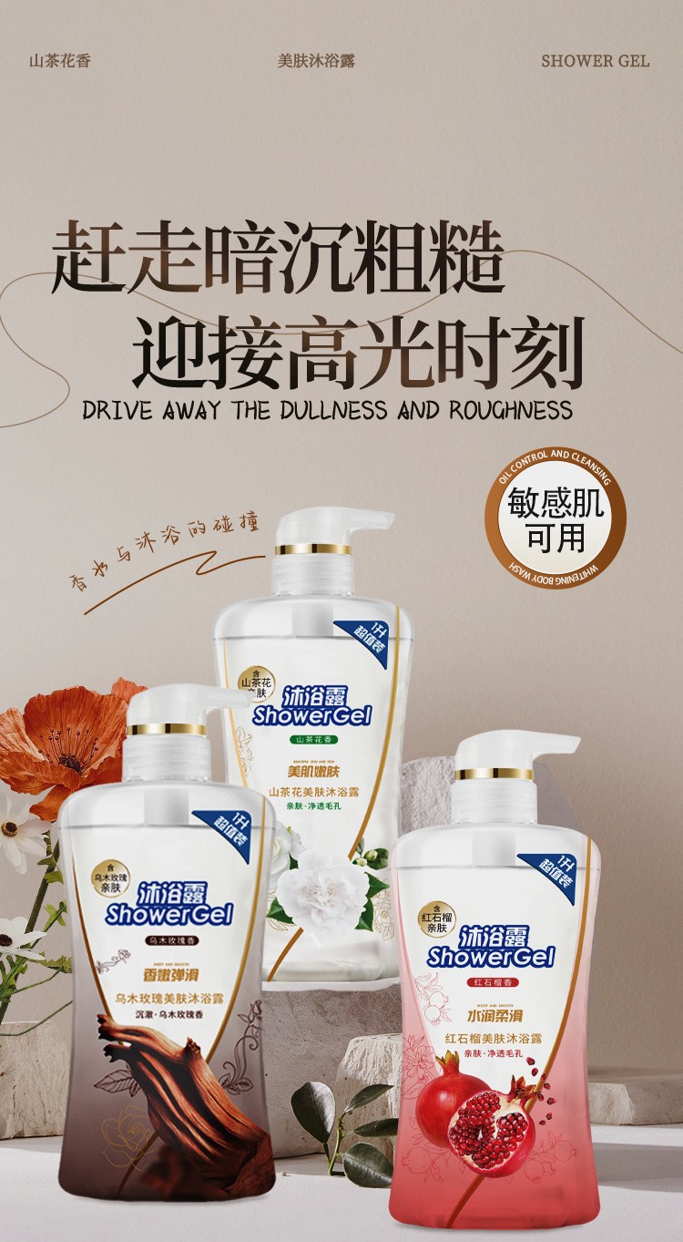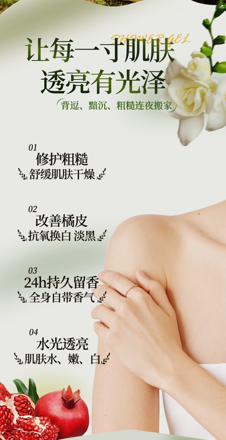 Гель для душа с гранатом, большой объем, аромат камелии, увлажняющий, семейный гель для душа, прямые продажи с фабрики