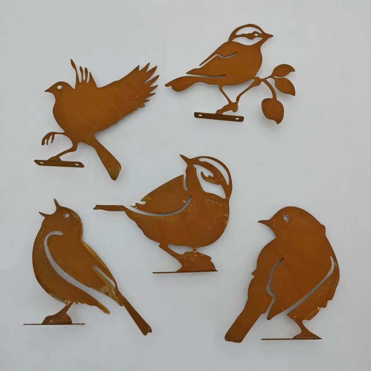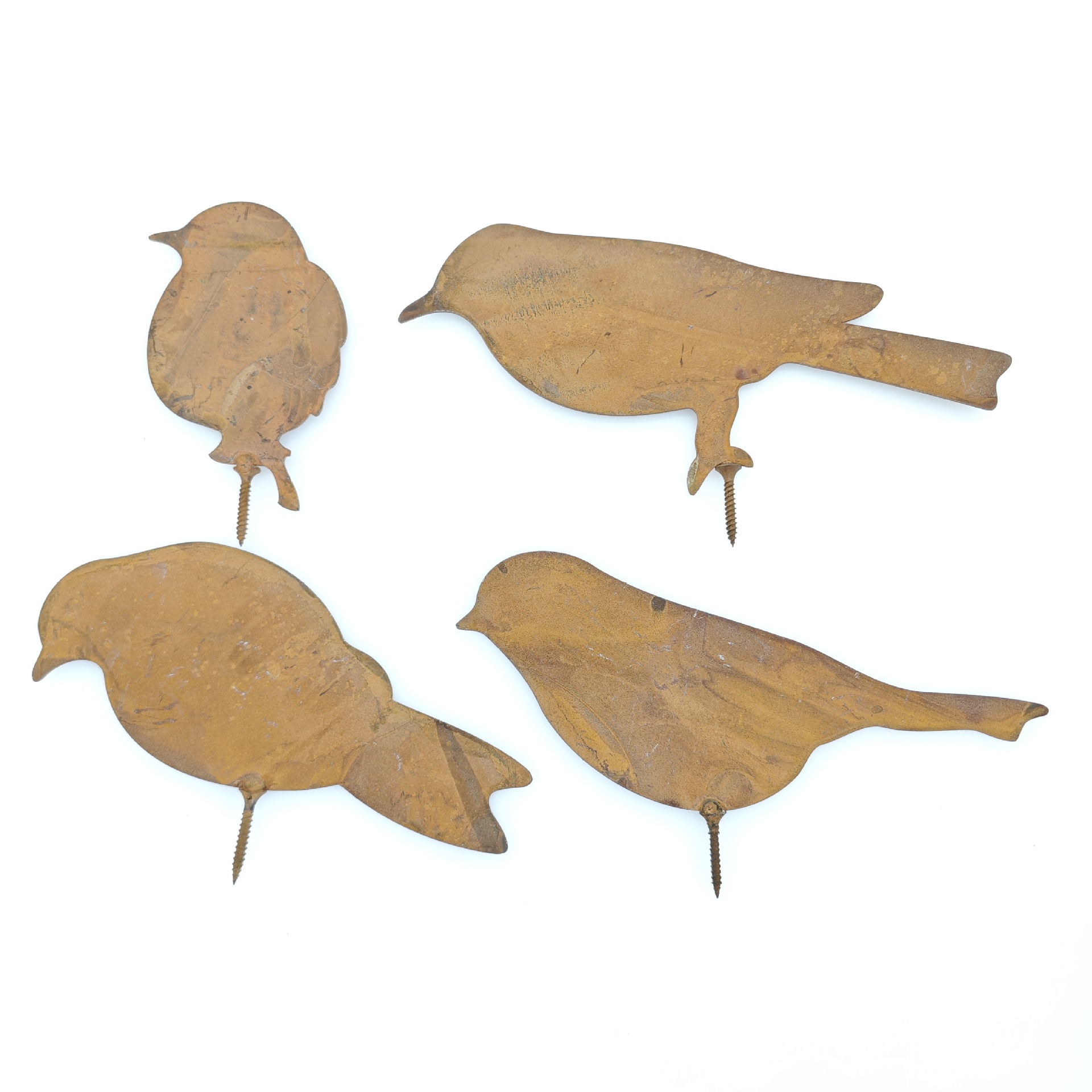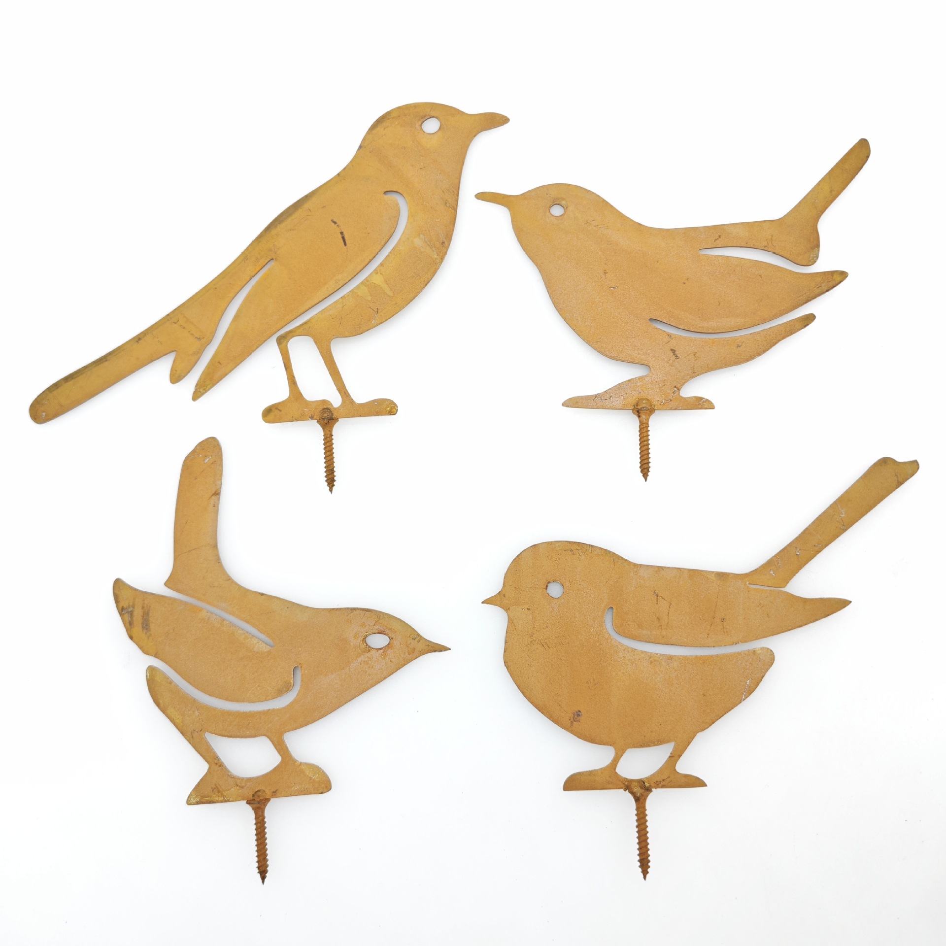 Металлические ржавые птичьи садовые украшения Силуэт с четырьмя птицами Открытый сад Сад Plug-In Vintage Art Deco