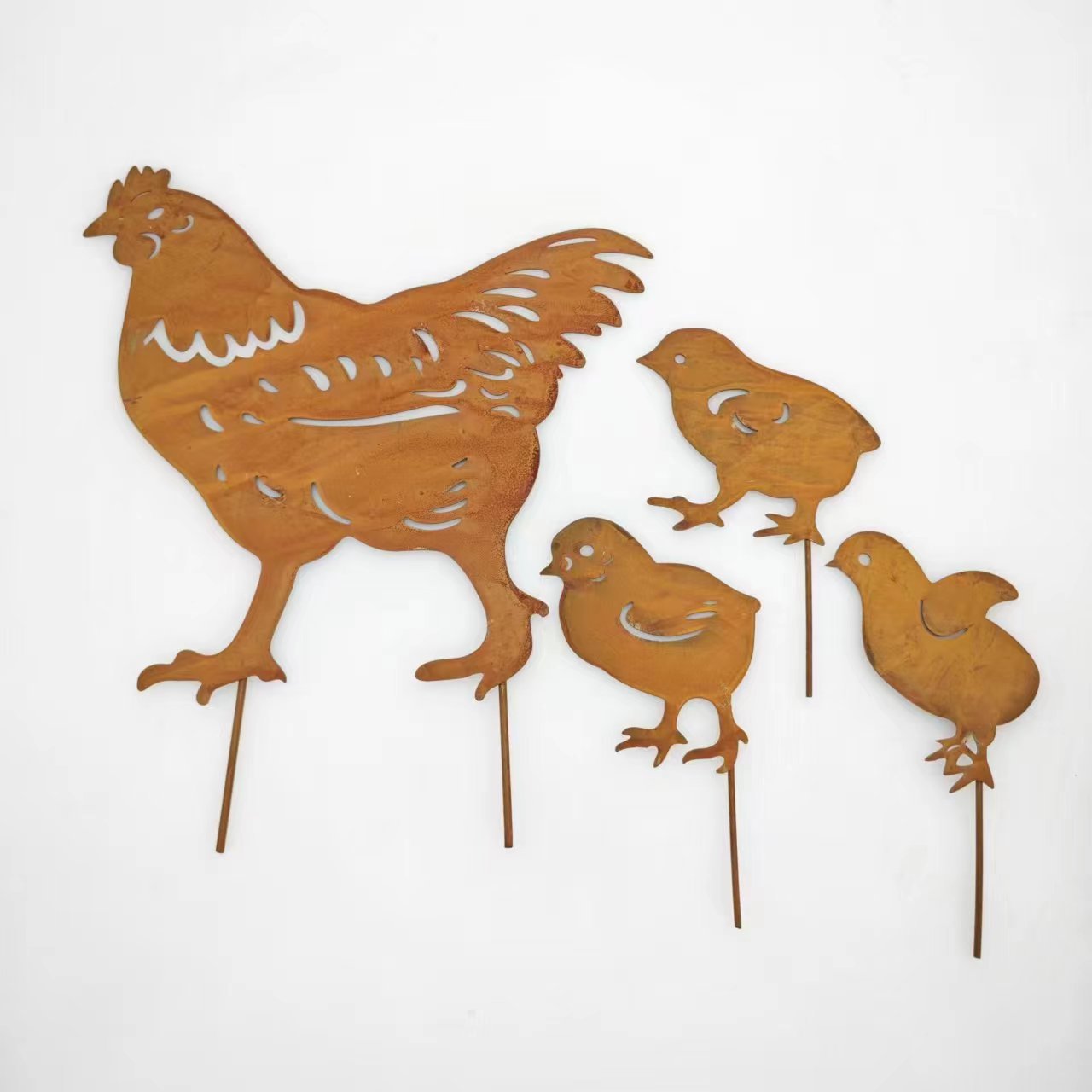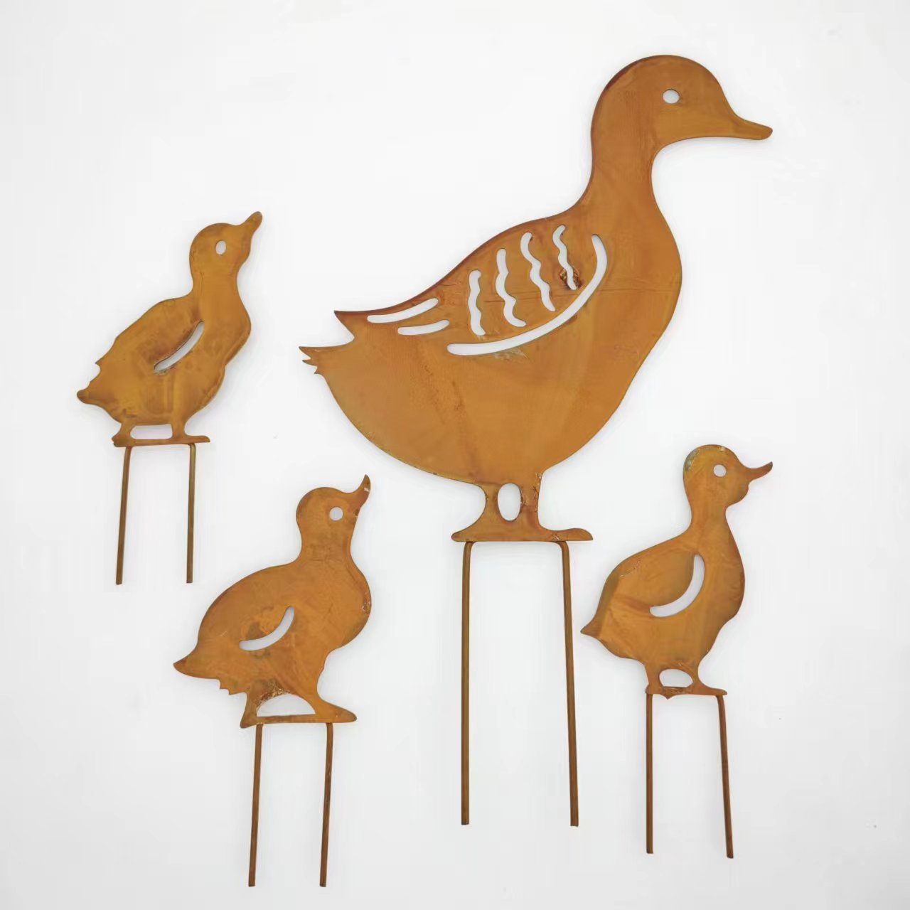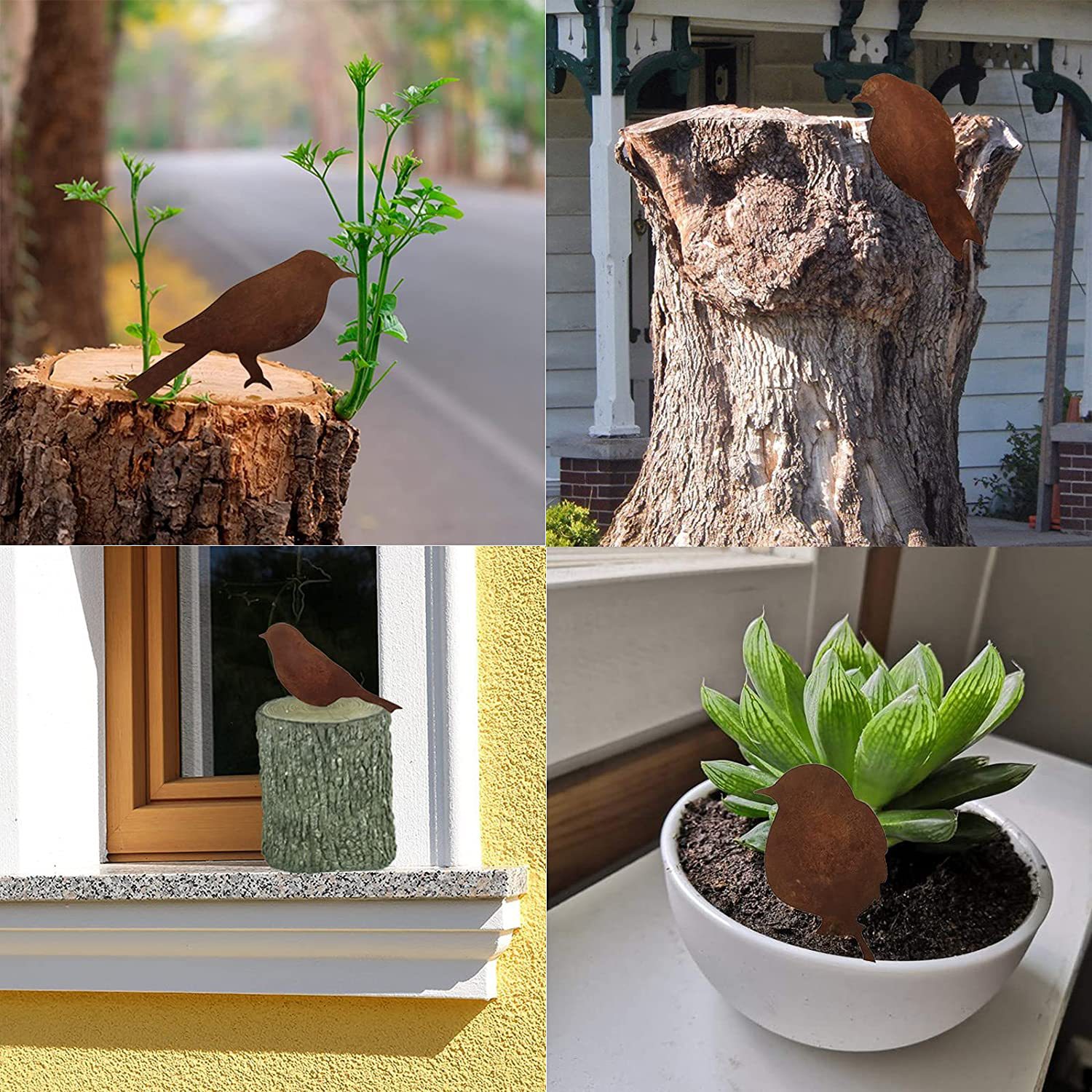 Металлические ржавые птичьи садовые украшения Силуэт с четырьмя птицами Открытый сад Сад Plug-In Vintage Art Deco