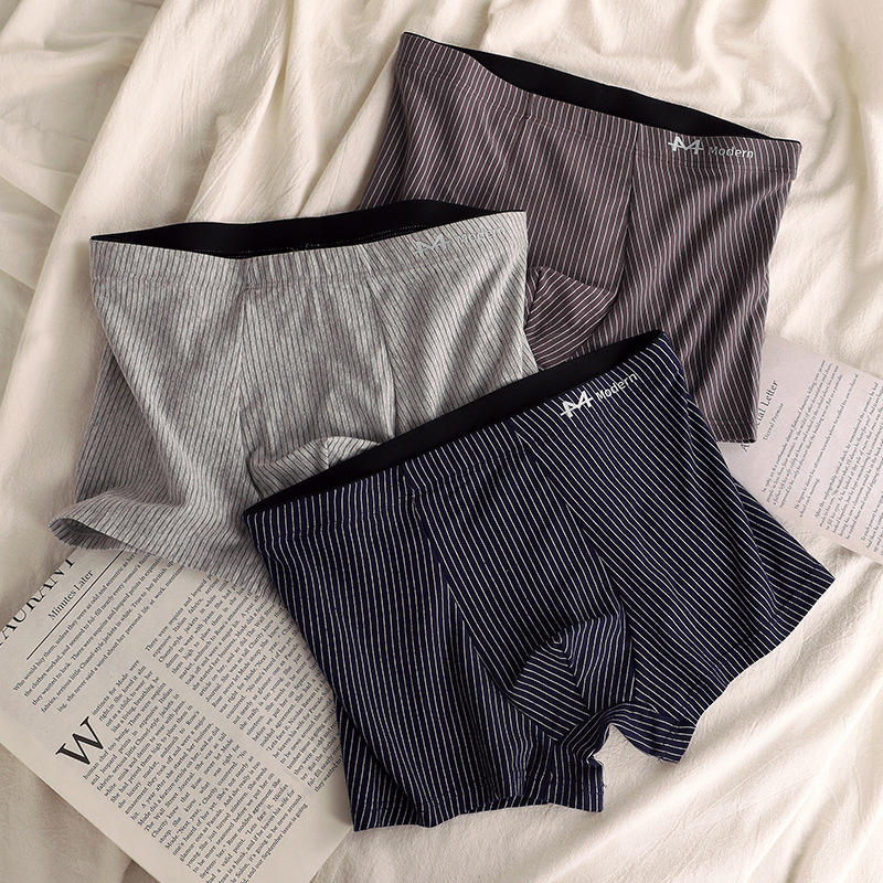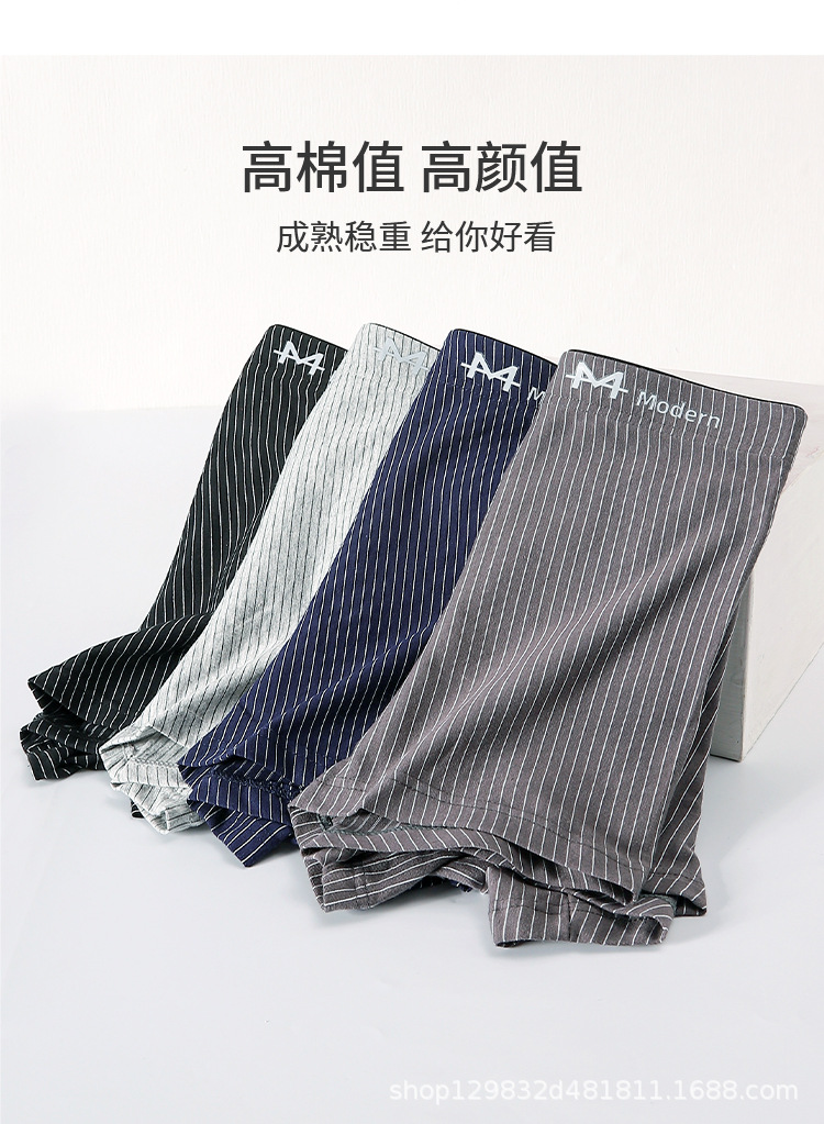 Мужские трусики хлопковые мужские антибактериальные плоские брюки свободные большие размеры в полоску спортивные шорты с четырьмя углами головы