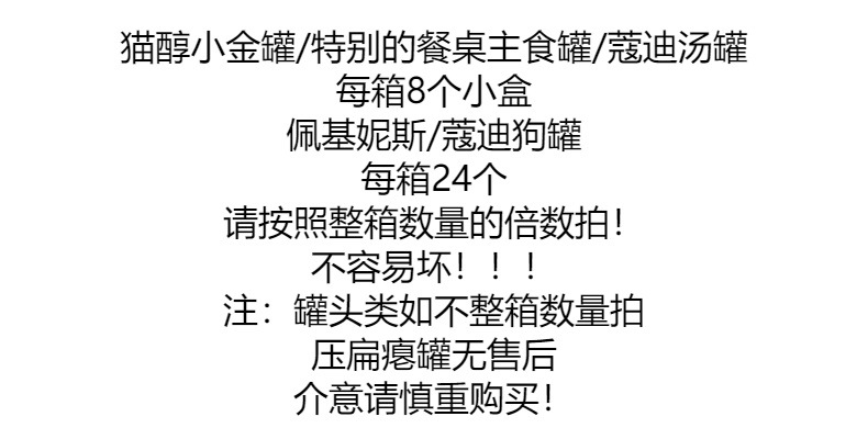 [Кошачий алкоголь маленький золотой горшок] курица 30 г * 6 банок; [Кошачий алкоголь маленький золотой горшок] тунец 30 г * 6 банок; [Кошачий алкоголь маленький золотой горшок] курица и треска 30 г * 6 банок; [Кошачий алкоголь маленький золотой горшок] Тунец и лосось 30 г * 6 банок; [Специальные столовые банки] курица и лосось 30 г * 6 банок; [Специальная банка для еды на обеденном столе] Голушка и лосось 30 г * 6 банок; [Специальные столовые банки] курица и говядина и перепела 30 г * 6 банок; [Специальная баночка с основными продуктами питания] Утка и мясо кролика 30 г * 6 банок; [Специальный обеденный стол, основная банка для еды] Куриный тунец и трески, 30 г * 6 банок; [Специальный обеденный стол, основная банка для еды] Куриный тунец и фосфорные креветки, 30 г * 6 банок; [Специальная баночка для обеденного стола] Смешанный вкус 30g * 6 банок; [Консервная банка для собак] курица 100 г; [Консервная банка для собак] Говядина со вкусом 100 г; [Консервная банка для собак] 100 г мяса утки; [Консервная банка для собак] курица и говядина 100 г; [Консервная банка для собак] Говядина и сыр 100 г; [Консервная банка для собак] Баранина 100 г; [Кустовая банка] Смешанная 30g * 24 банки; [Основные блюда для кошек] курица и криль 10 г * 5; [Основные блюда для кошек] курица и окунь и треска 10 г * 5 палочек; [Основные блюда для кошек] курица и лосось 10 г * 5; [Основные блюда для кошек] Тунец и лосось 10 г * 5; [Основные блюда для кошек] курица и криль 10 г * 60 палочек; [Основные блюда для кошек] курица и окунь и треска 10 г * 60 палочек; [Основные блюда для кошек] курица и лосось 10 г * 60 палочек; [Основные блюда для кошек] Тунец и лосось 10 г * 60; [Функциональная банка для собак] Иммунизация 100 г; [Функциональная банка для собак] 100 г волос; [Функциональная банка для собак] Желудок 100 г; [Функциональная банка для собак] 100 г суставов; [Основные блюда] Куриное мясо кролика 62 г * 12 упаковок; [Специальный столовый набор основных блюд] курица голубь 62 г * 12; [Специальный столовый набор основных блюд] Куриный лосось 62 г * 12 упаковок; [Специальный столовый набор основных блюд] Смешанный вкус 62 г * 12 упаковок
