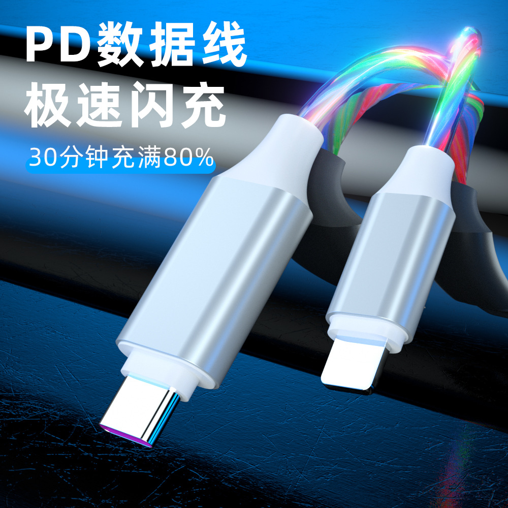 Автомобильный кабель для передачи данных для Apple type-c мобильный телефон PD быстрая зарядная линия 20W шатер светящийся зарядный кабель