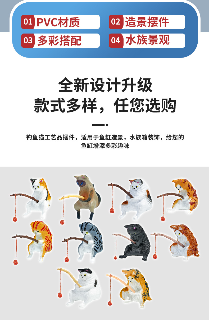 Орнамент для аквариума в виде рыбацкого кота, подвесное украшение для аквариума, подходящее для рабочего стола, миниатюрный микроландшафтный аквариумный декор в виде рыбацкого котенка.