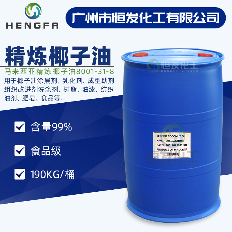 椰子原油经过脱酸、脱胶、脱色、脱臭等精炼工艺处理提取的椰子油,耐高温,可煎炸,并有一定抗炎消毒的左右,多用在食品、化妆品、及高级饲料产品里。精炼椰子油经过多地采样调研精选出优质油品,并与马来西亚工厂达成深度合作,稳定大量供应精炼椰子油。