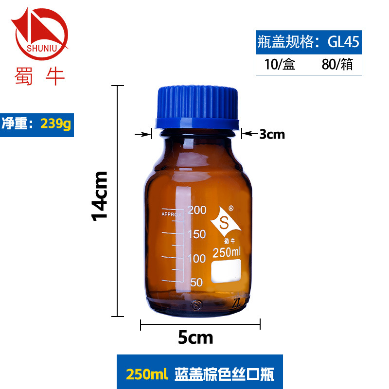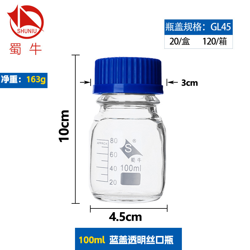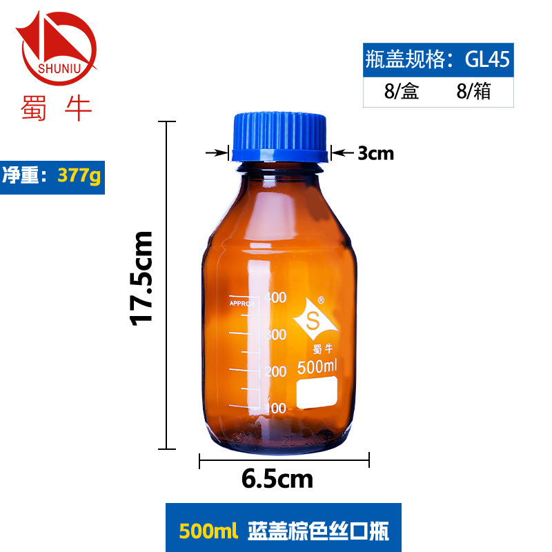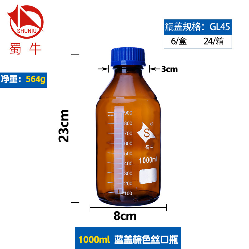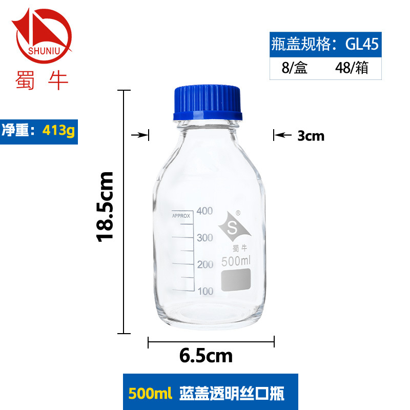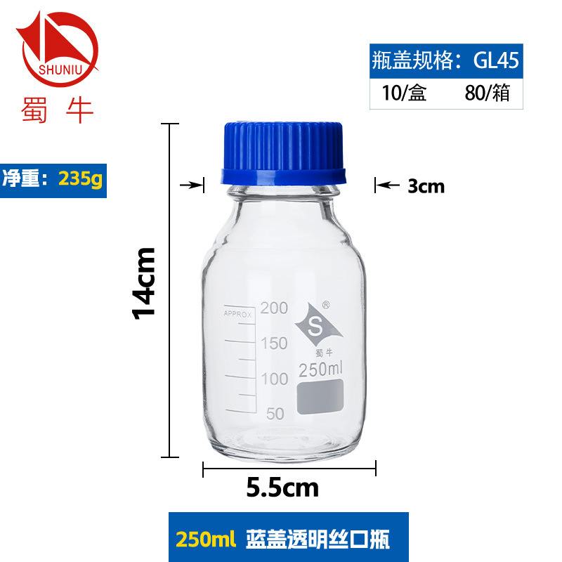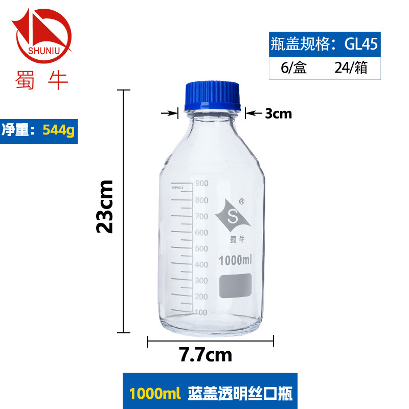 Бутыль для реагентов из высококачественного боросиликатного стекла Shuniu с синей крышкой, химическая, с резьбовым горлышком, для мобильной фазы, с шелковым горлышком, лабораторная, с синей крышкой