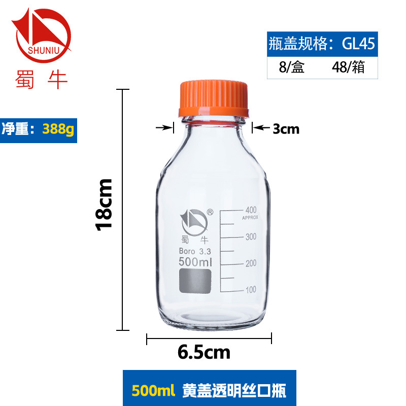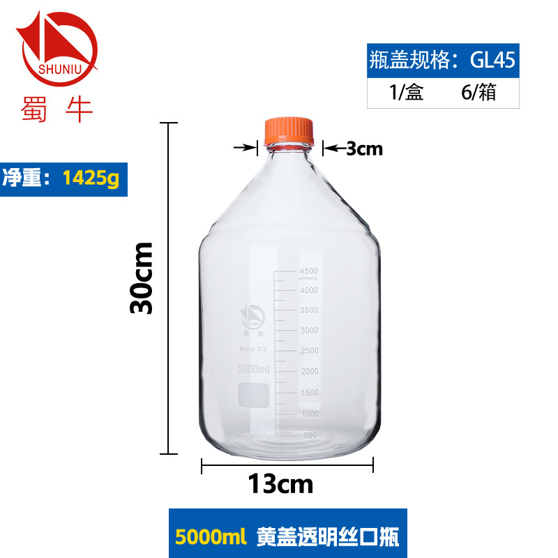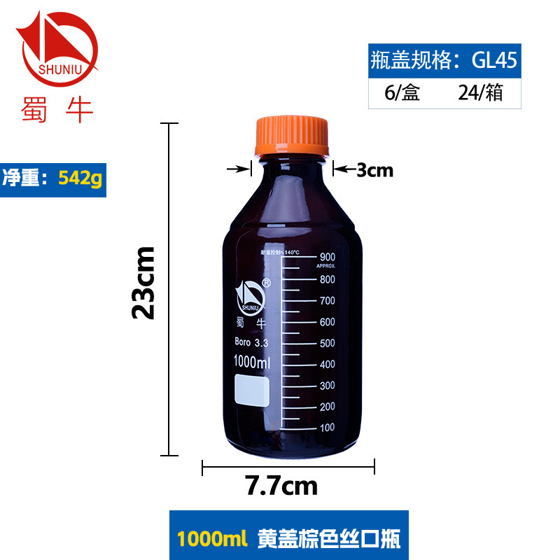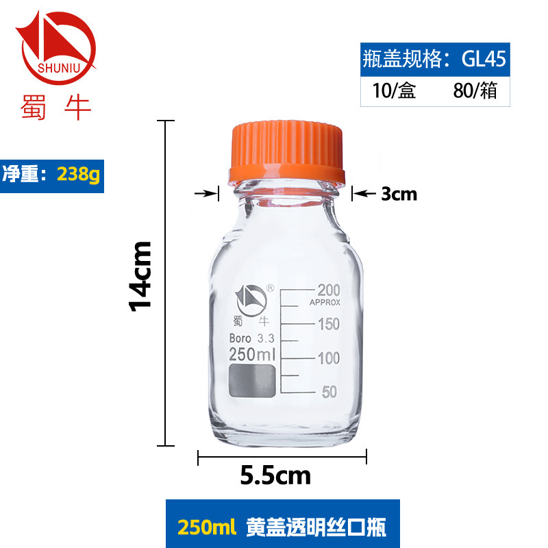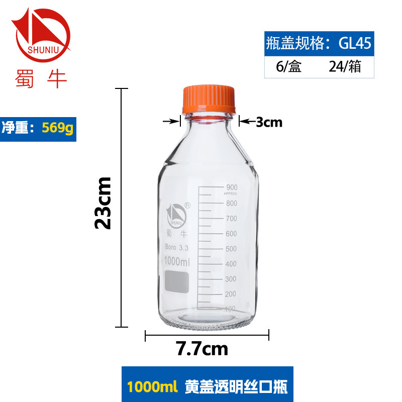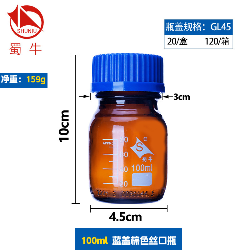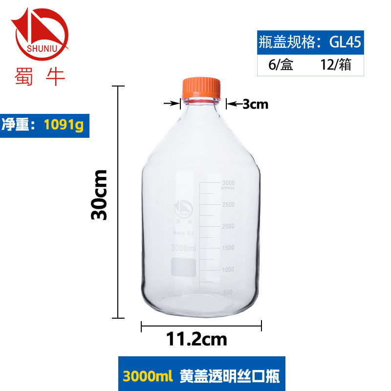 Бутыль для реагентов из высококачественного боросиликатного стекла Shuniu с синей крышкой, химическая, с резьбовым горлышком, для мобильной фазы, с шелковым горлышком, лабораторная, с синей крышкой