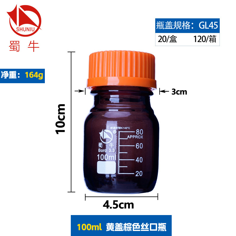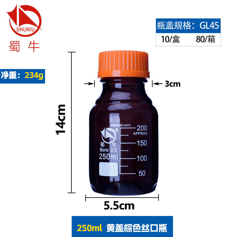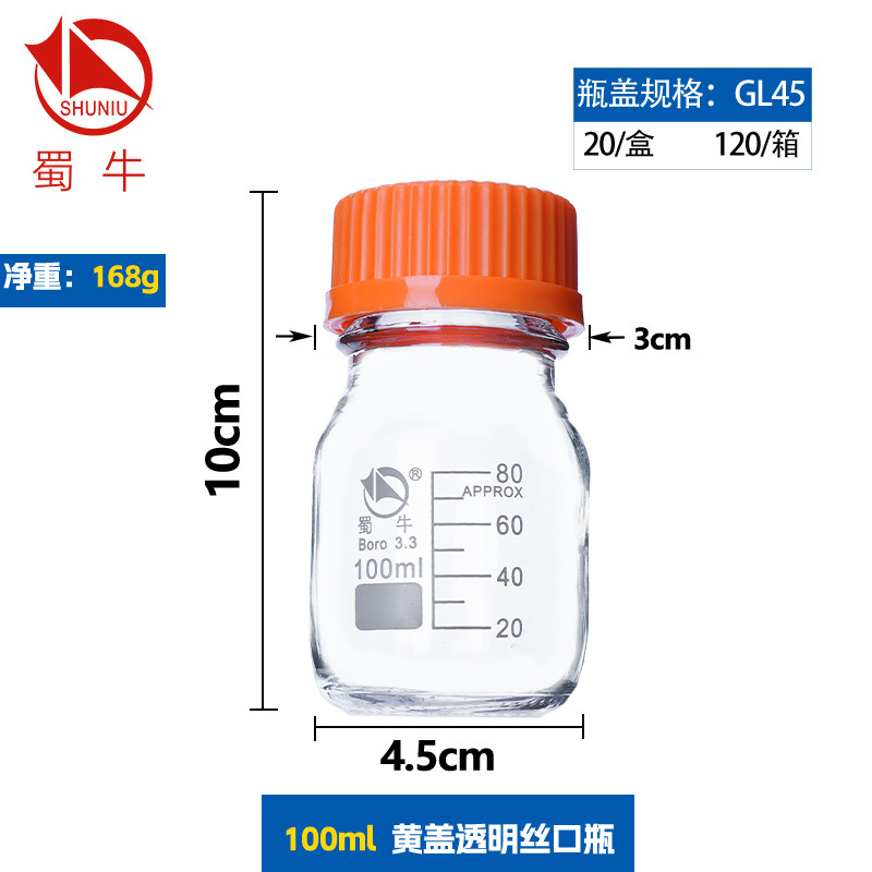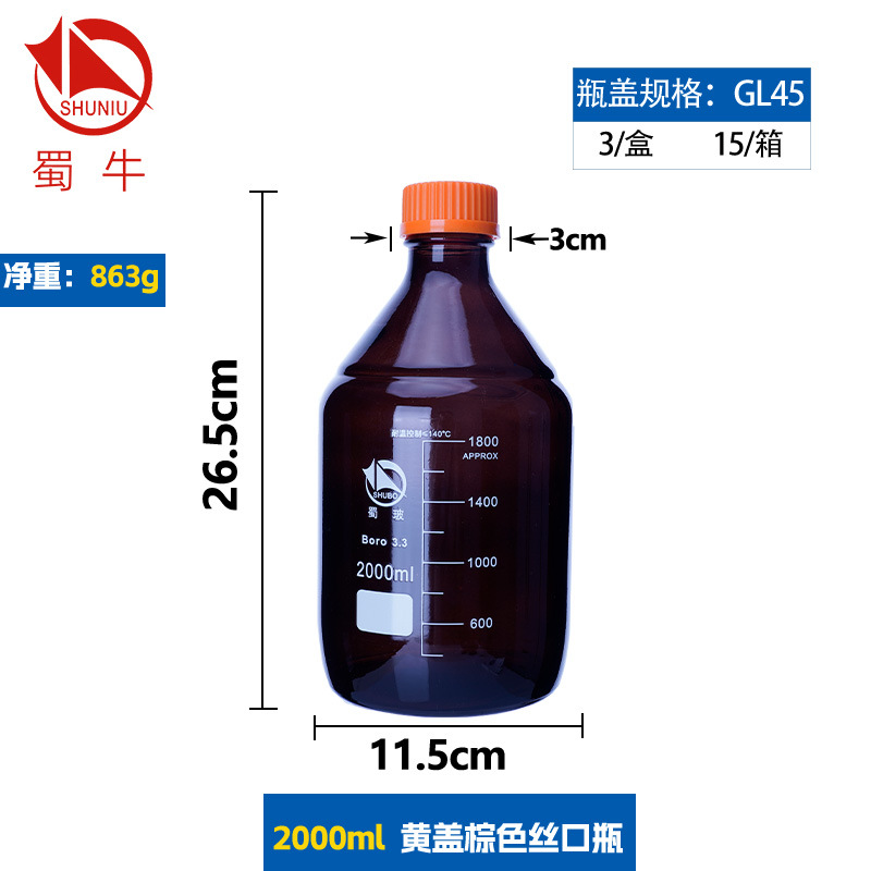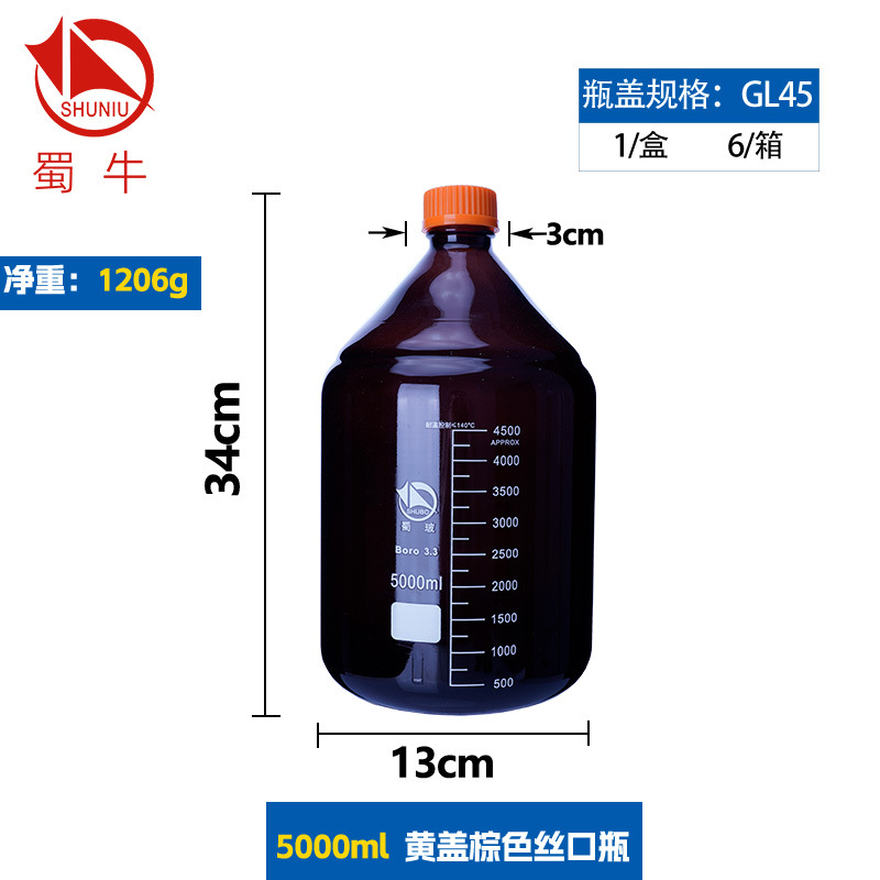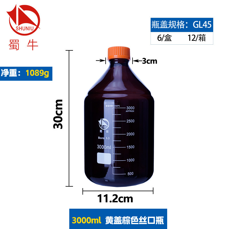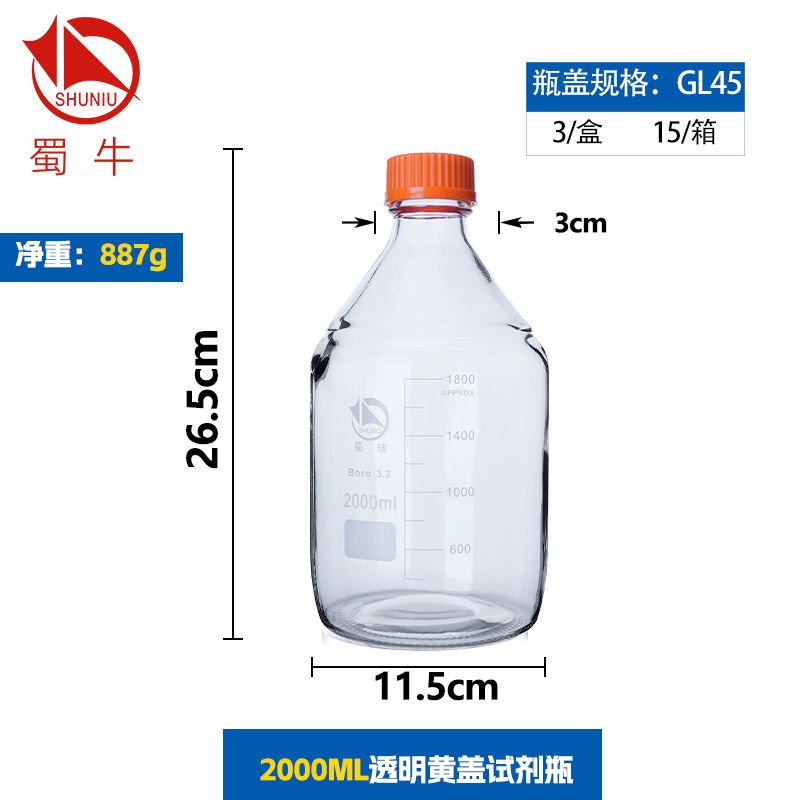 Бутыль для реагентов из высококачественного боросиликатного стекла Shuniu с синей крышкой, химическая, с резьбовым горлышком, для мобильной фазы, с шелковым горлышком, лабораторная, с синей крышкой