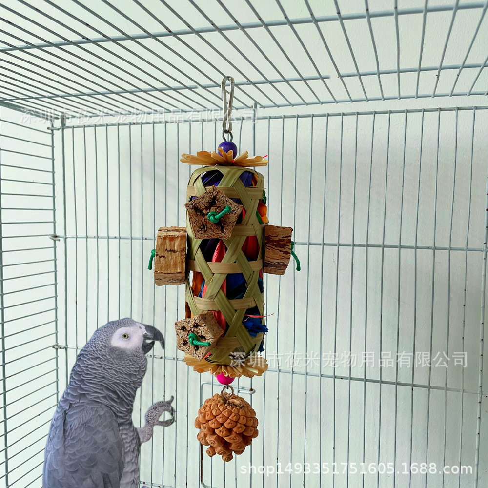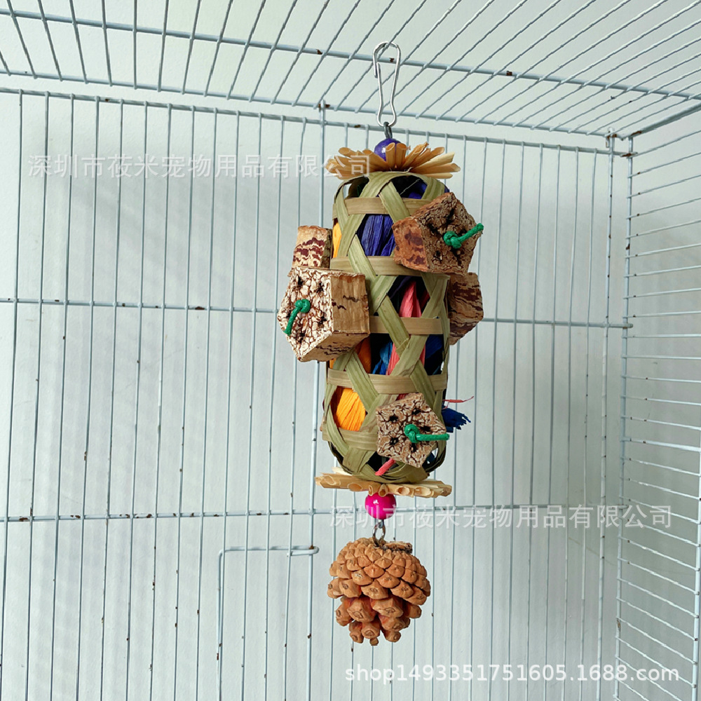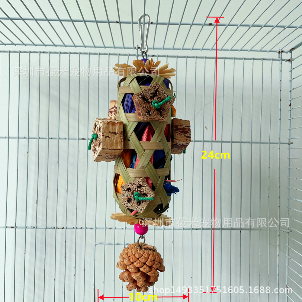 Попугай игрушка птицы бамбуковая тканая корзина для кормления красочная кукурузная шелуха орех карамбола Коренная игрушка для укуса