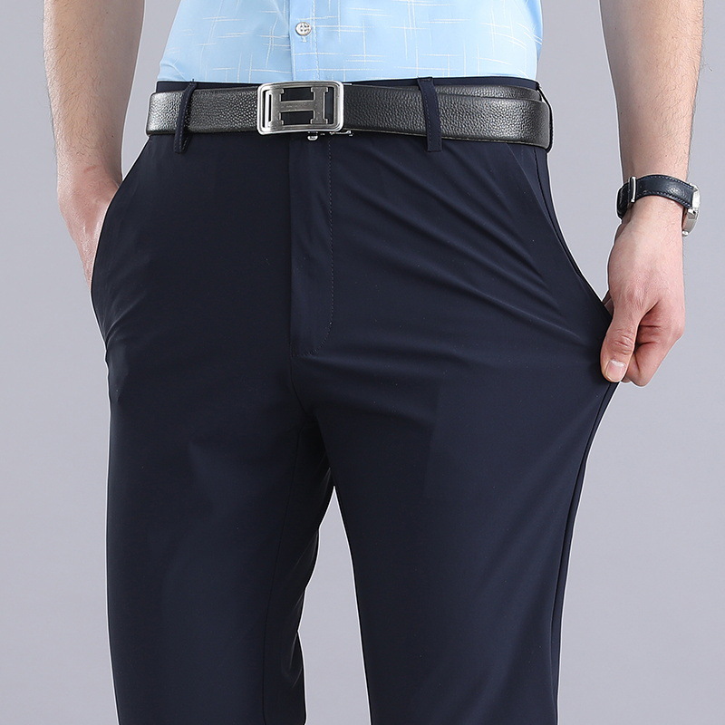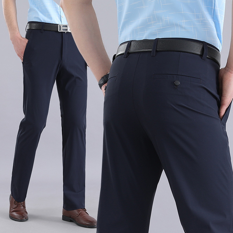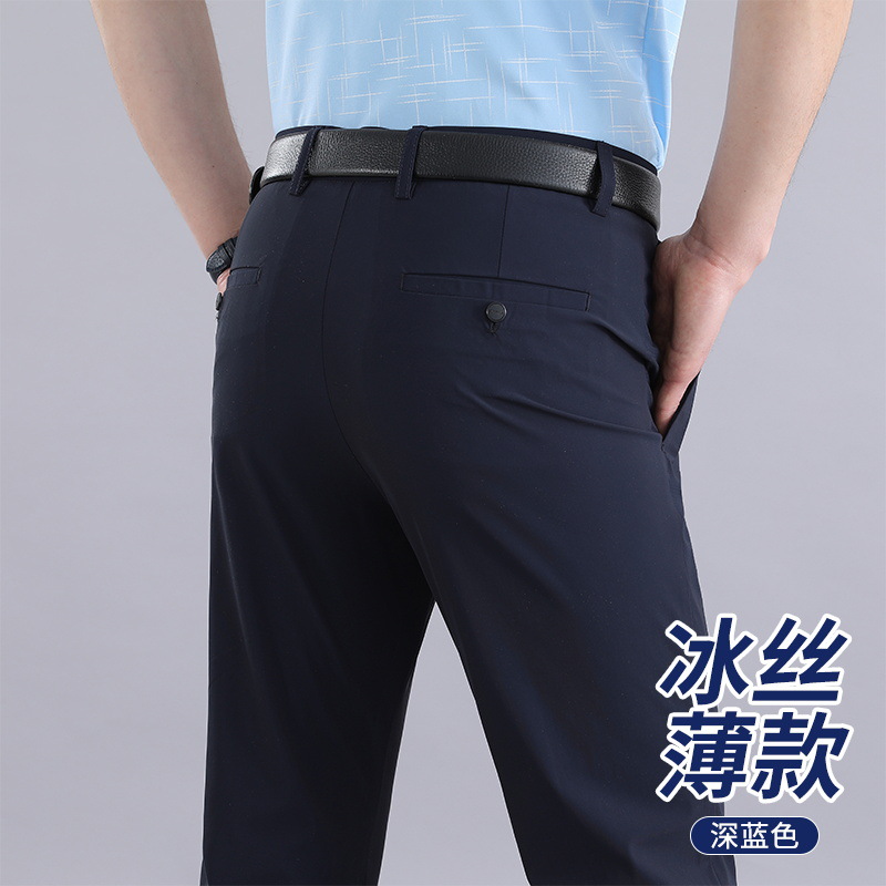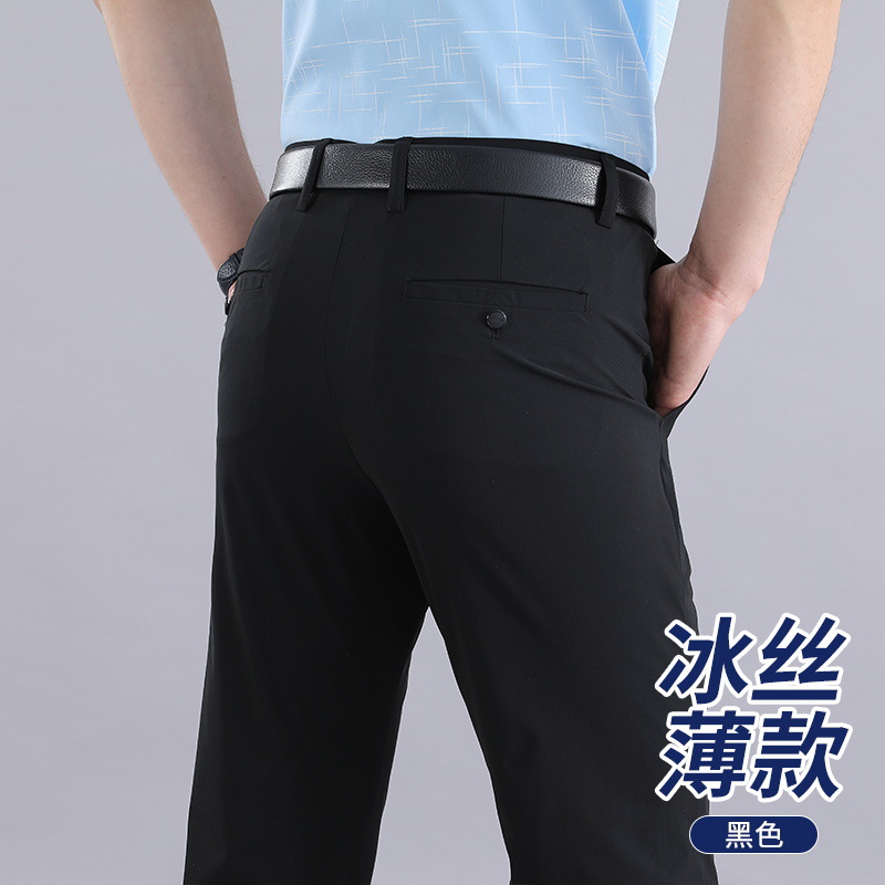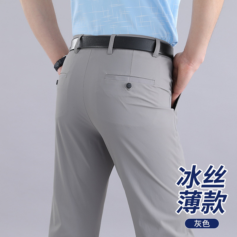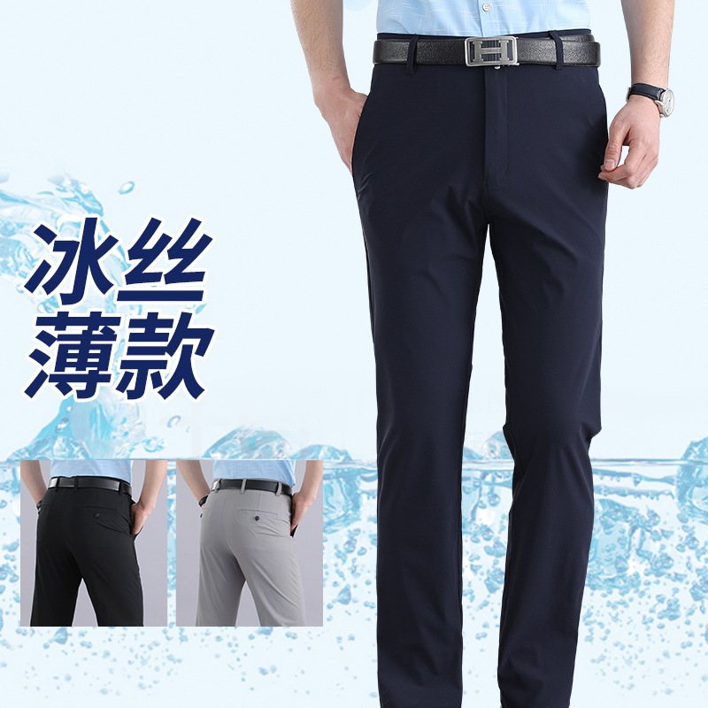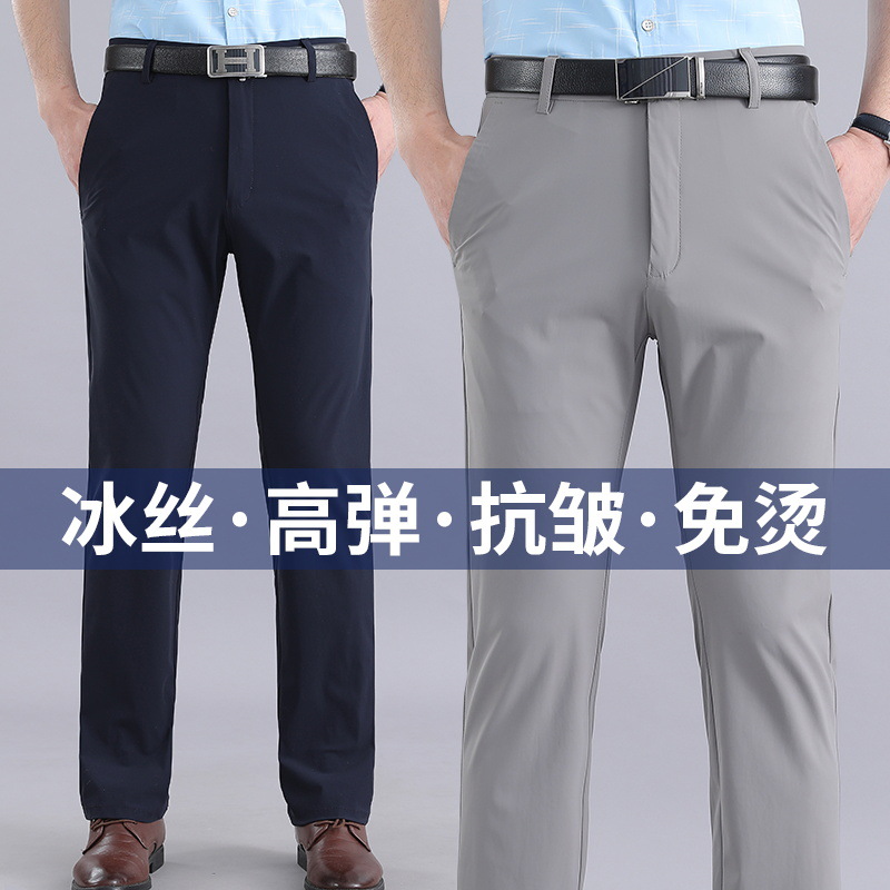 Мужские летние брюки в стиле вестерн, эластичное свободное прямое платье из ледяного шелка, деловые повседневные брюки, без глажки, мужские быстросохнущие брюки
