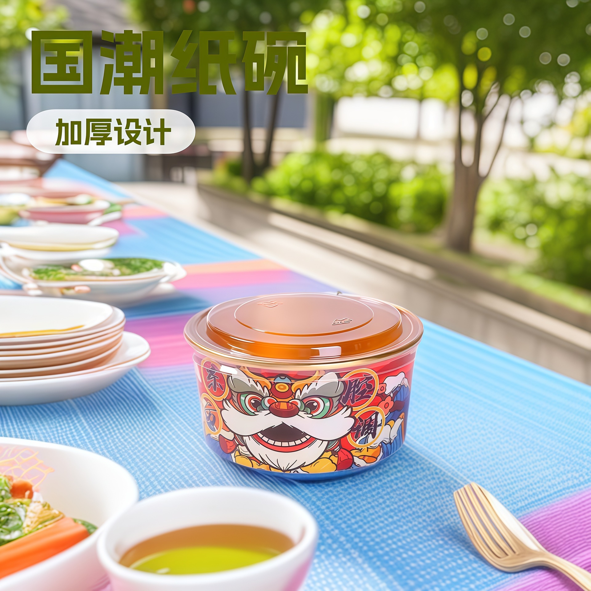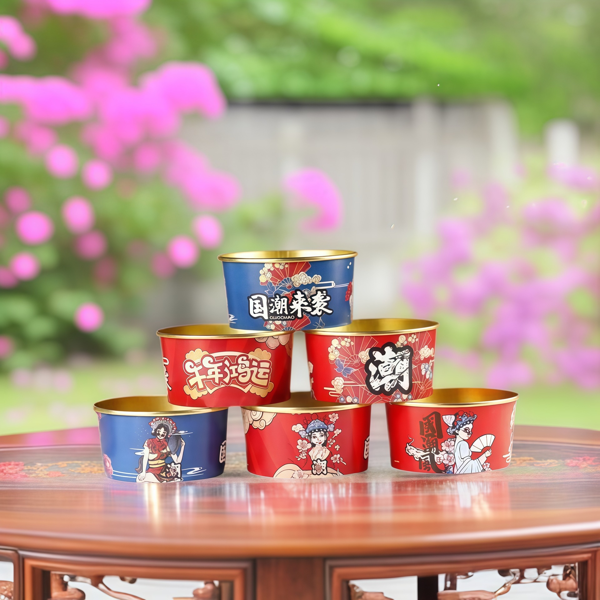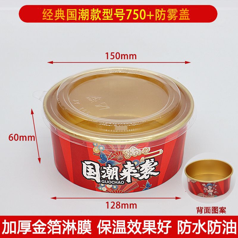 Индивидуальная бумажная тарелка с золотым тиснением, высококачественная упаковка для еды на вынос, термоизолированная коробка для ланча, упаковка для горячей и кисло-сладкой лапши, круглая упаковочная коробка