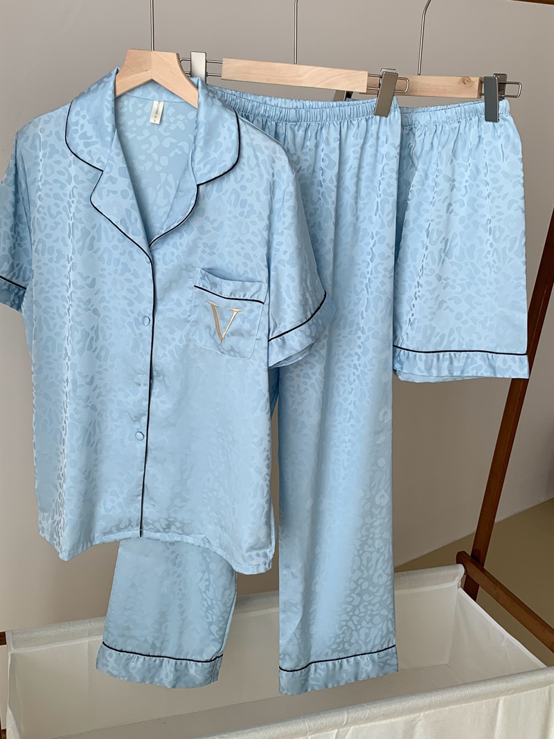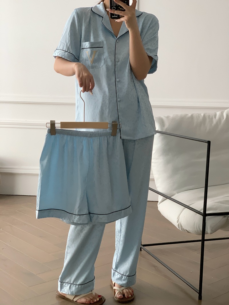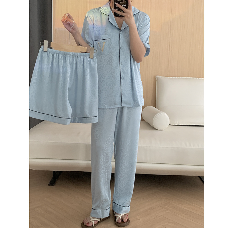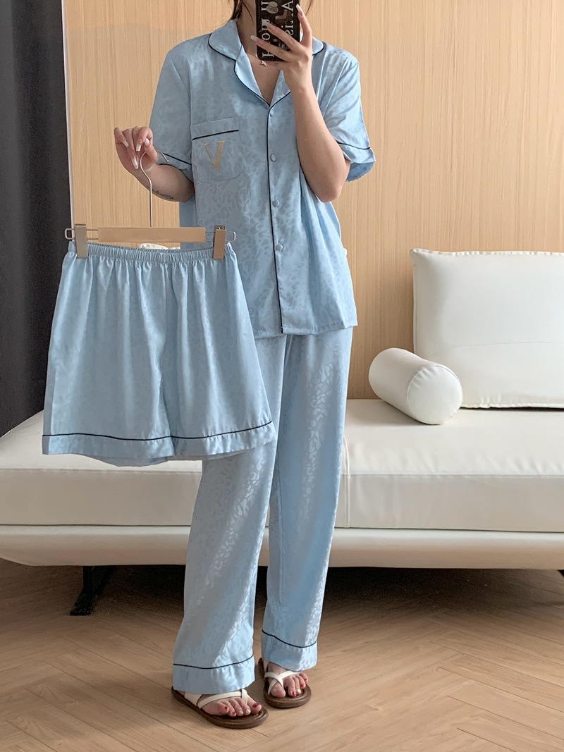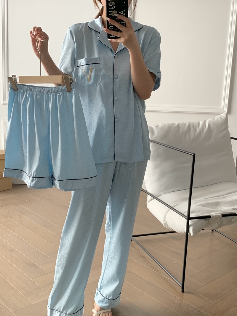 Женская пижама с лацканами и длинными рукавами в Корейском стиле, Новинка лета, свободные брюки высокого класса, домашняя одежда, повседневный комплект из трех предметов