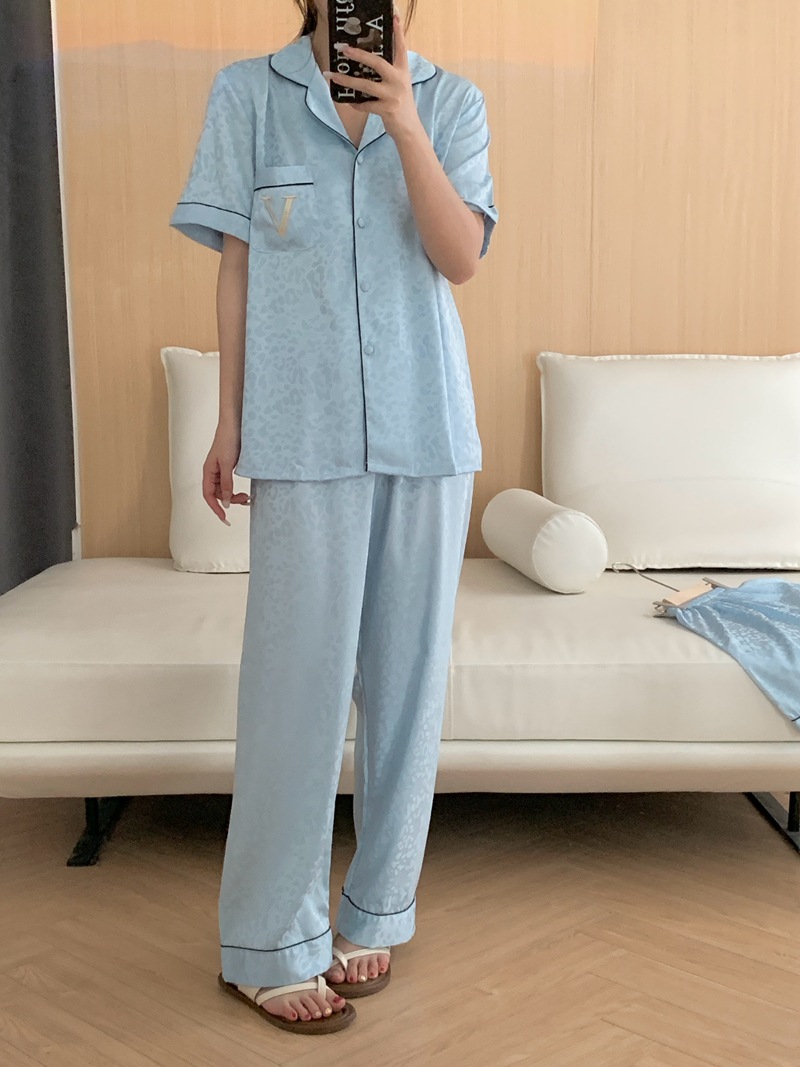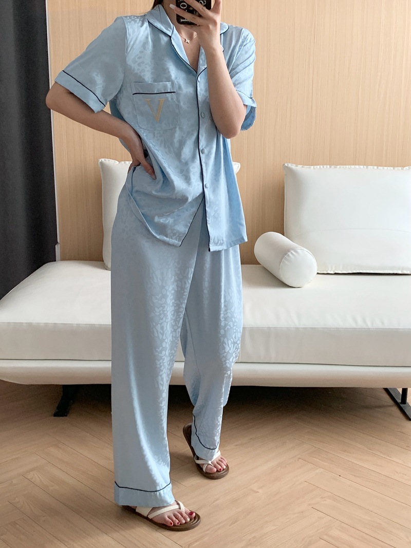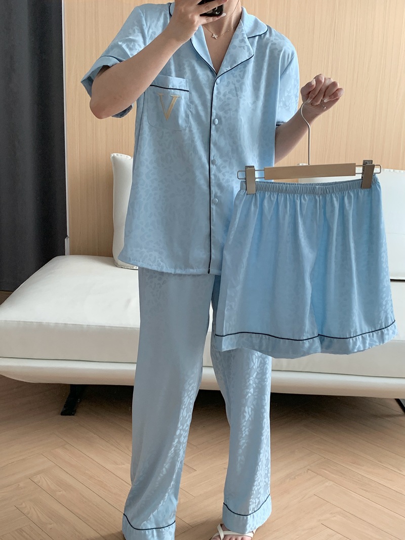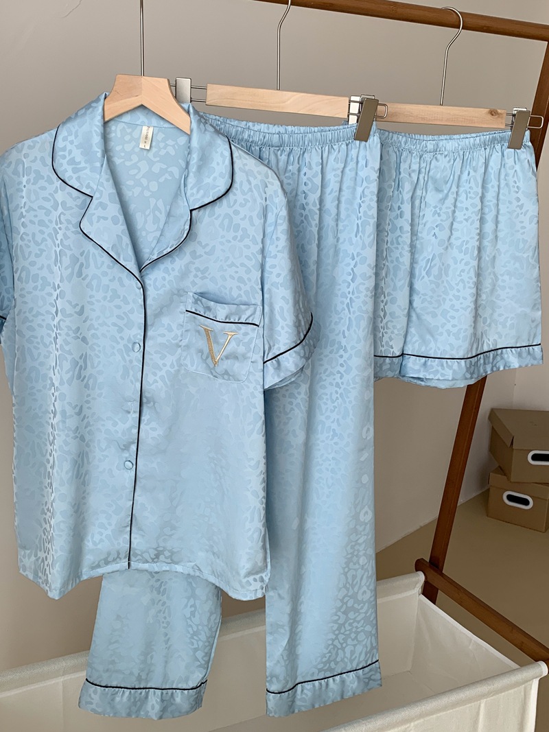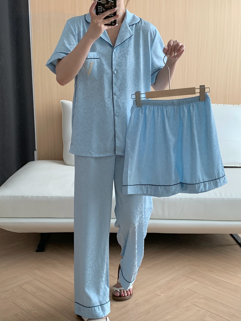 Женская пижама с лацканами и длинными рукавами в Корейском стиле, Новинка лета, свободные брюки высокого класса, домашняя одежда, повседневный комплект из трех предметов