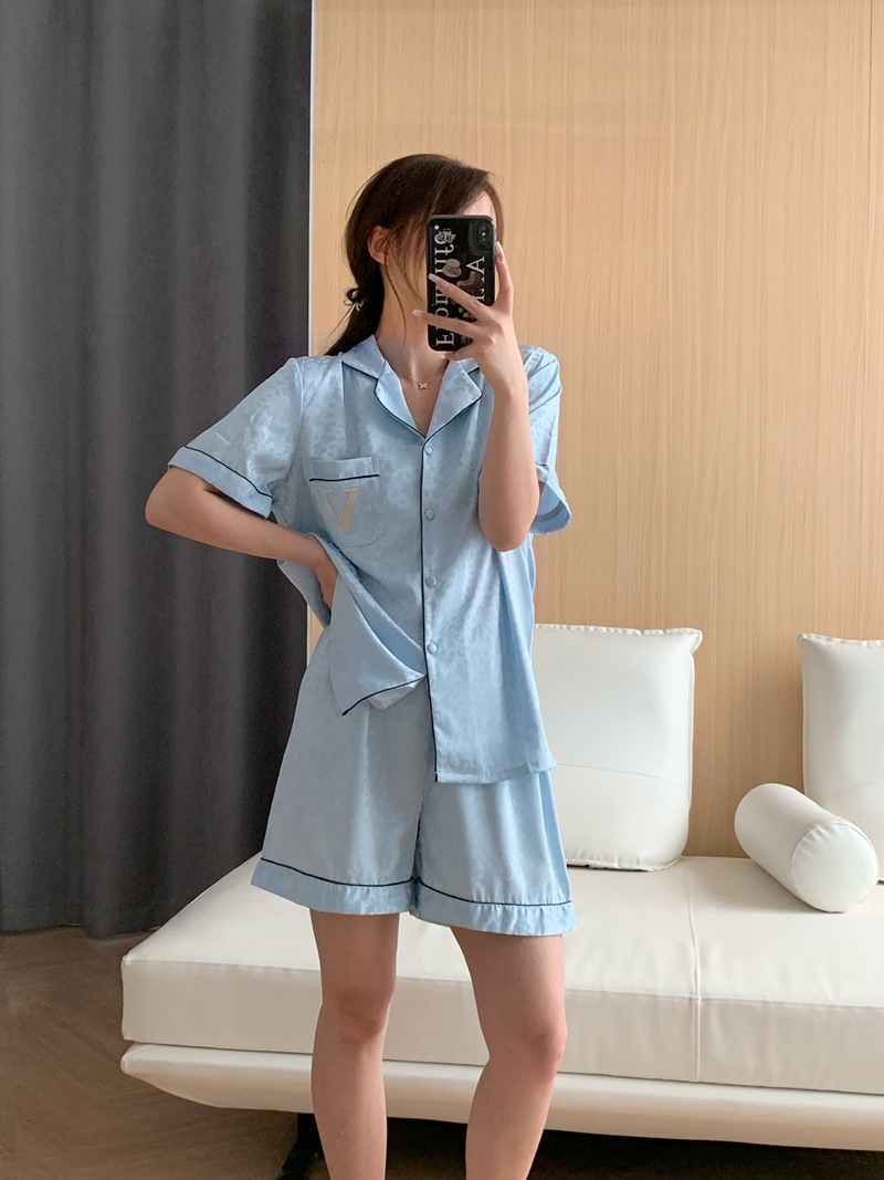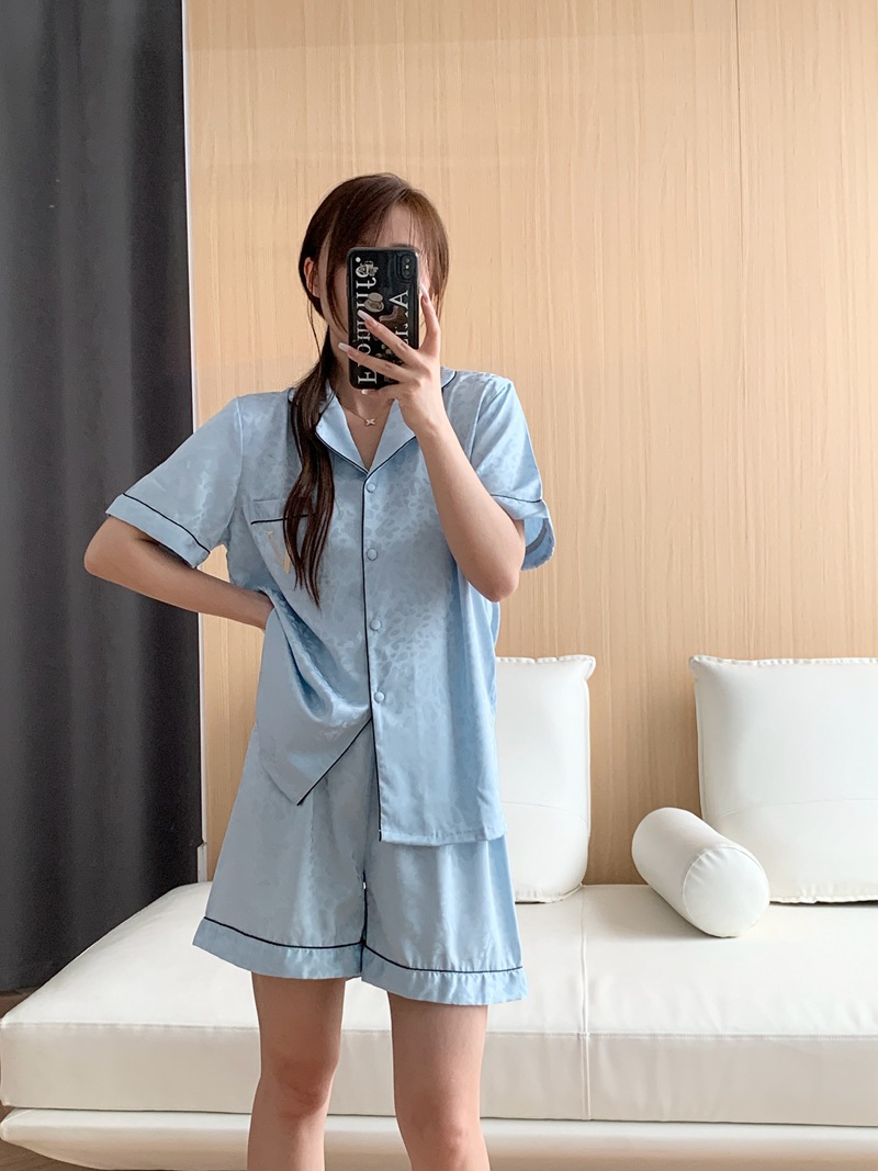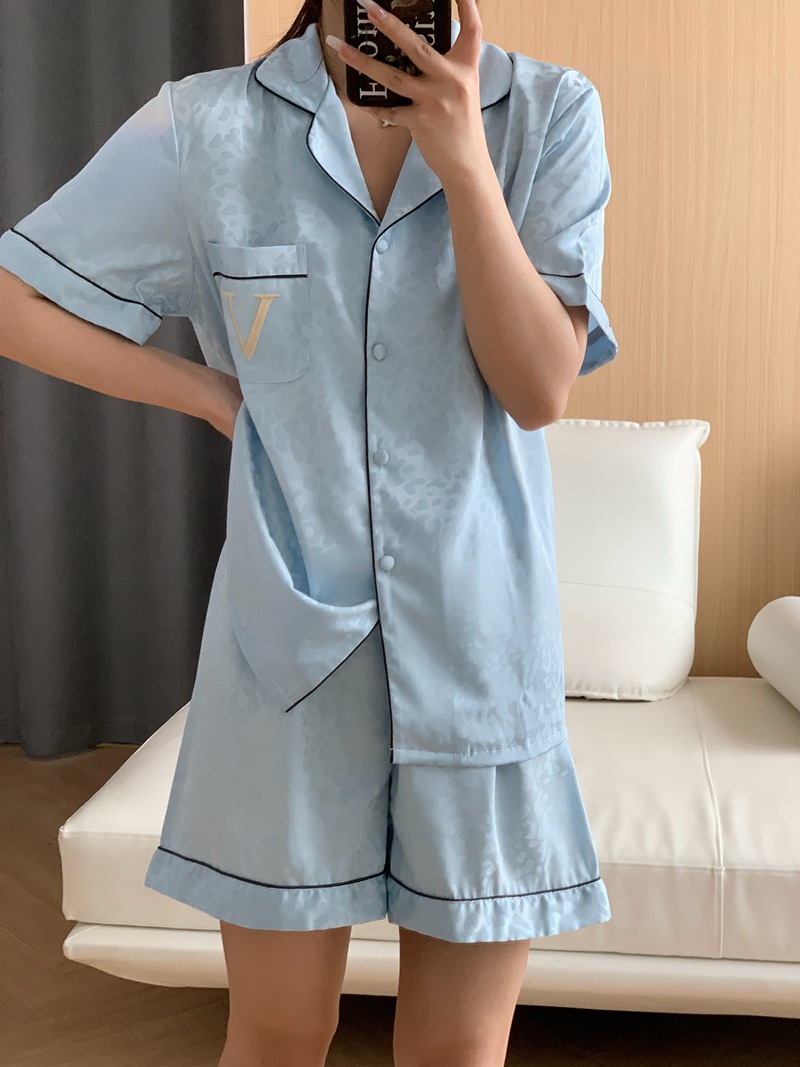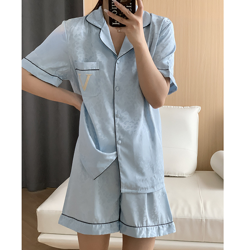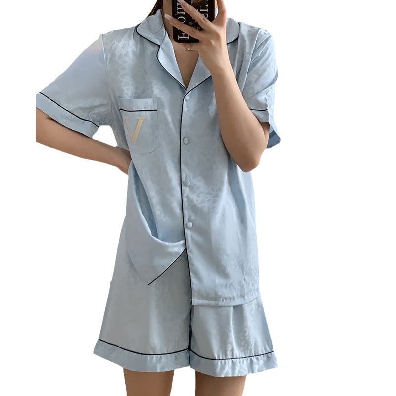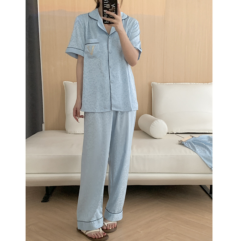 Женская пижама с лацканами и длинными рукавами в Корейском стиле, Новинка лета, свободные брюки высокого класса, домашняя одежда, повседневный комплект из трех предметов