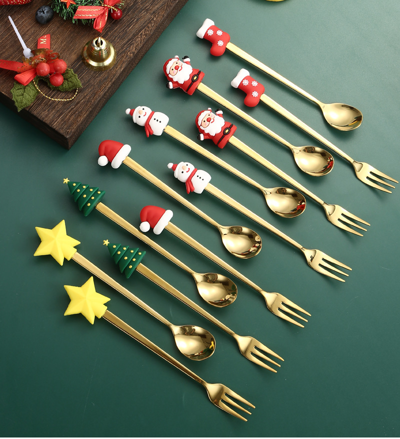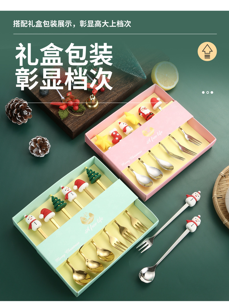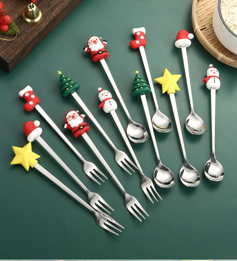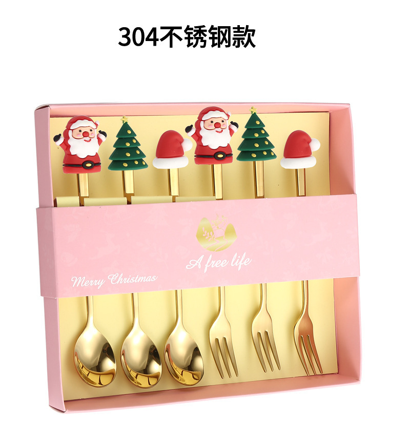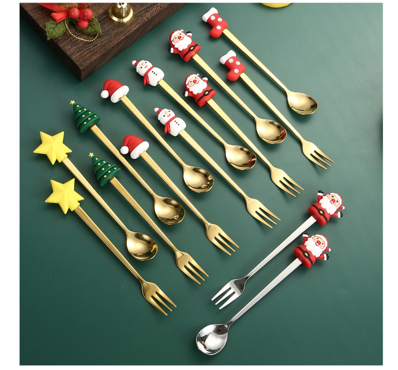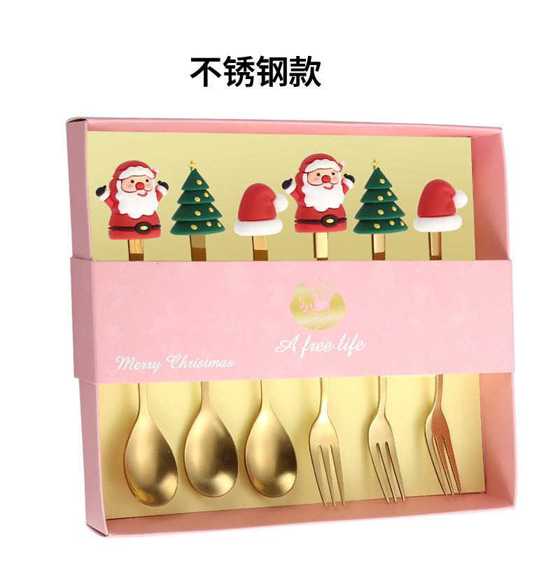 Набор подарочных ложек и вилок из нержавеющей стали для рождественского экспорта, креативный стиль ins, высококачественная десертная вилка для перемешивания